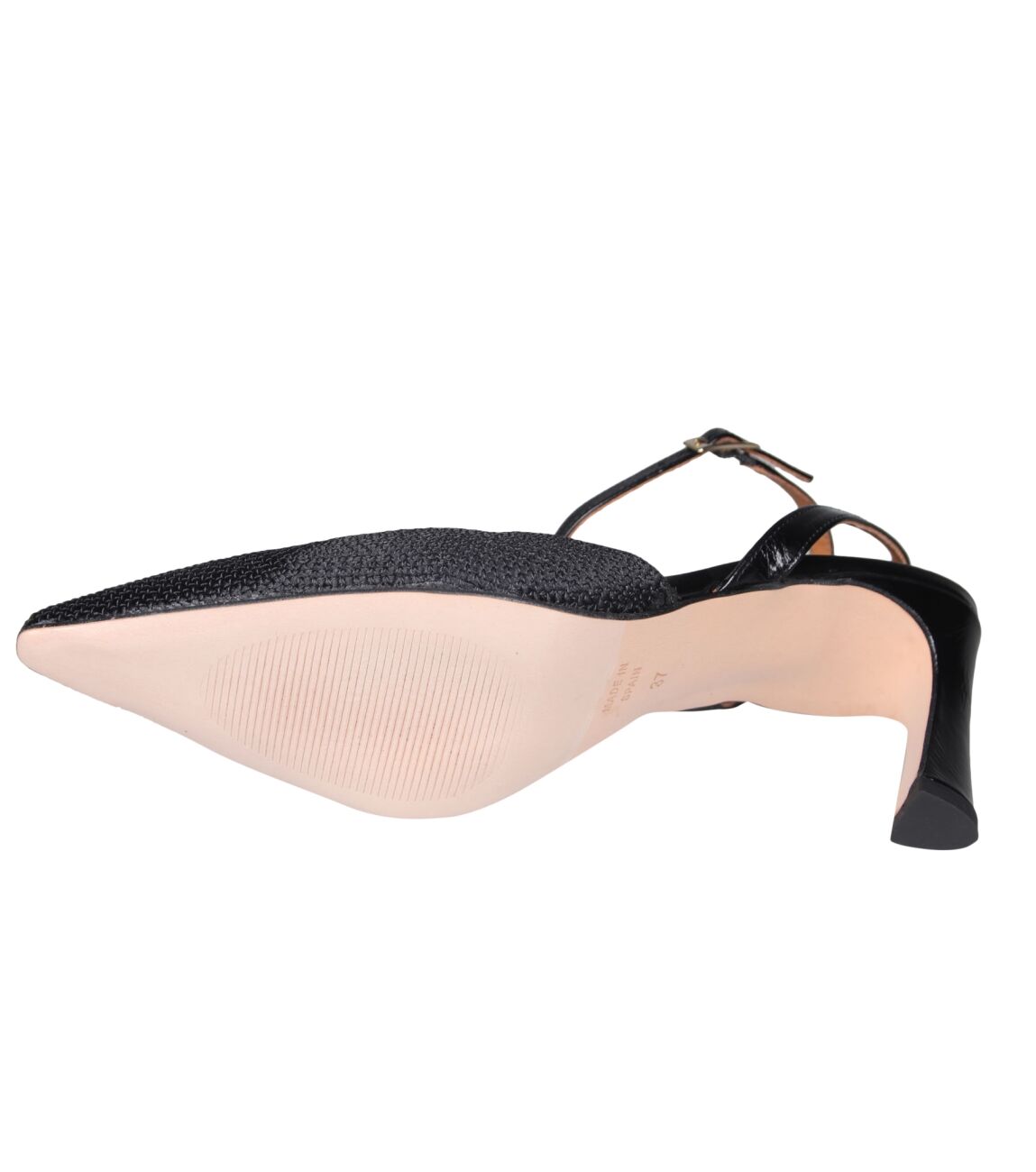 De AMALIA 26022-458B slingback van Angel Alarcon in cordela cr negra - greta negro is gemaakt van raffia.