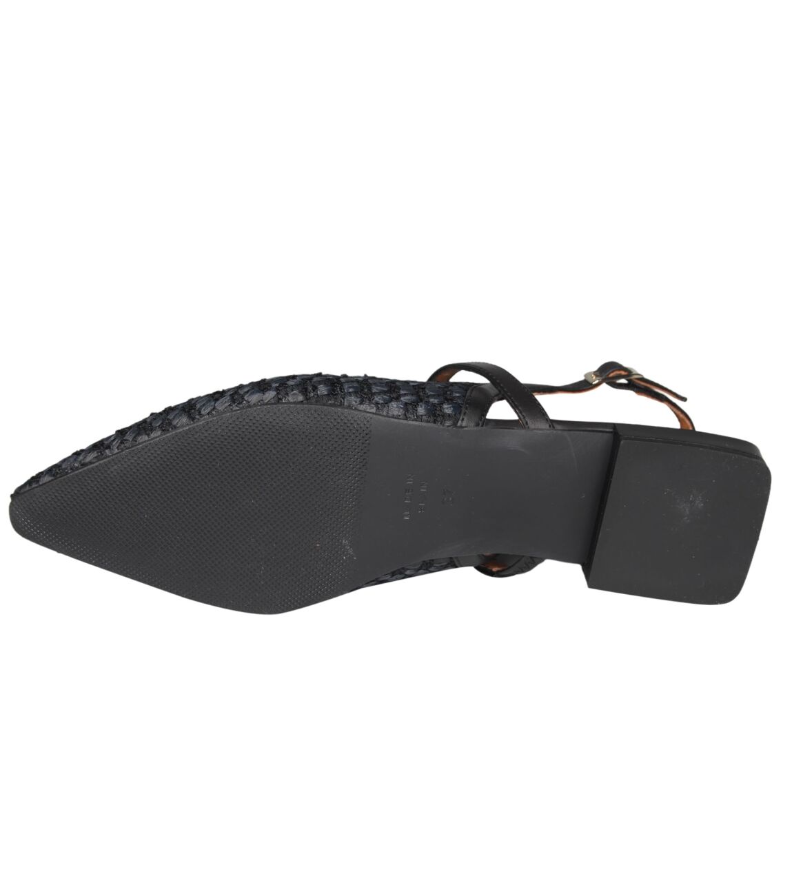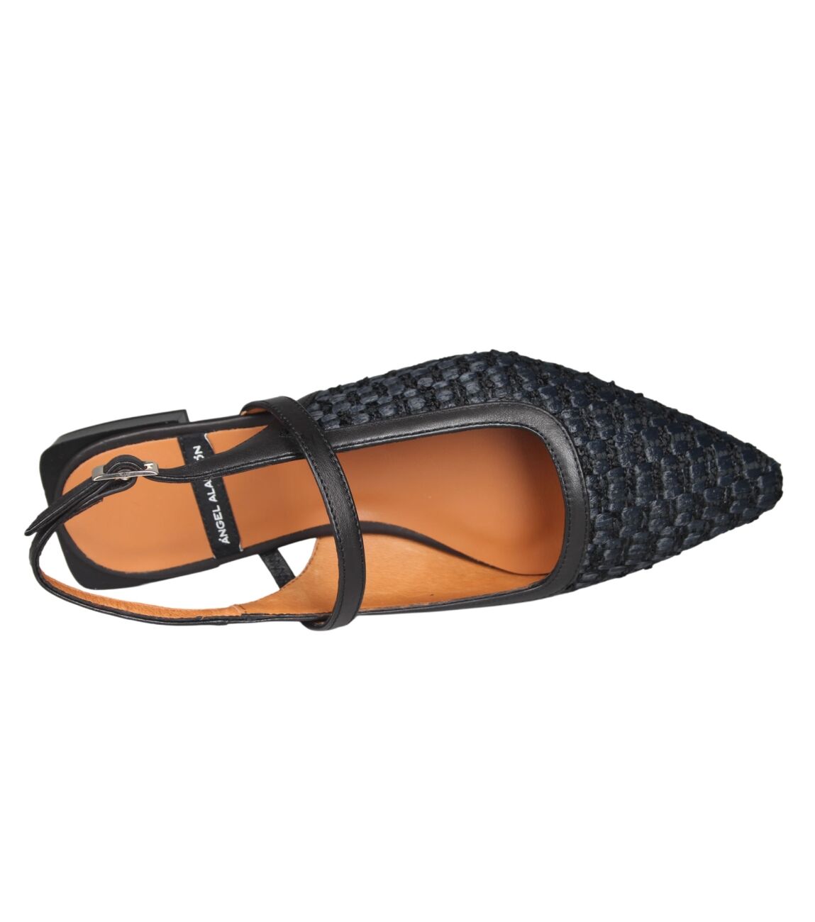 De IMELDA 26002 530B slingback van Angel Alarcon in rafia negra - next negro - tacon is gemaakt van raffia.