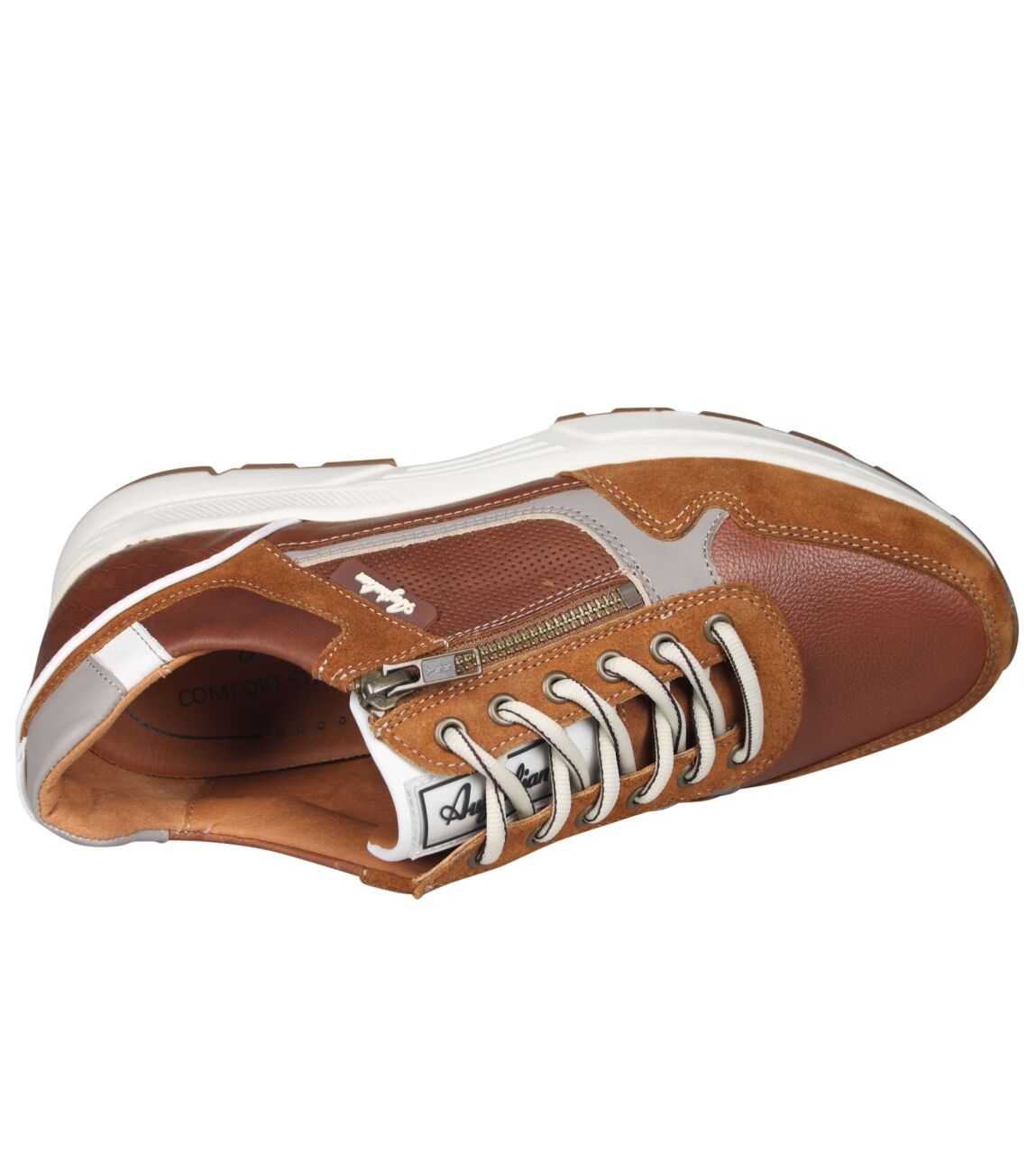 De 15.1682.02-T6E sneaker van Australian in wijdte K in cognac-taupe-white is gemaakt van leer/suede en geschikt voor extra brede voeten.