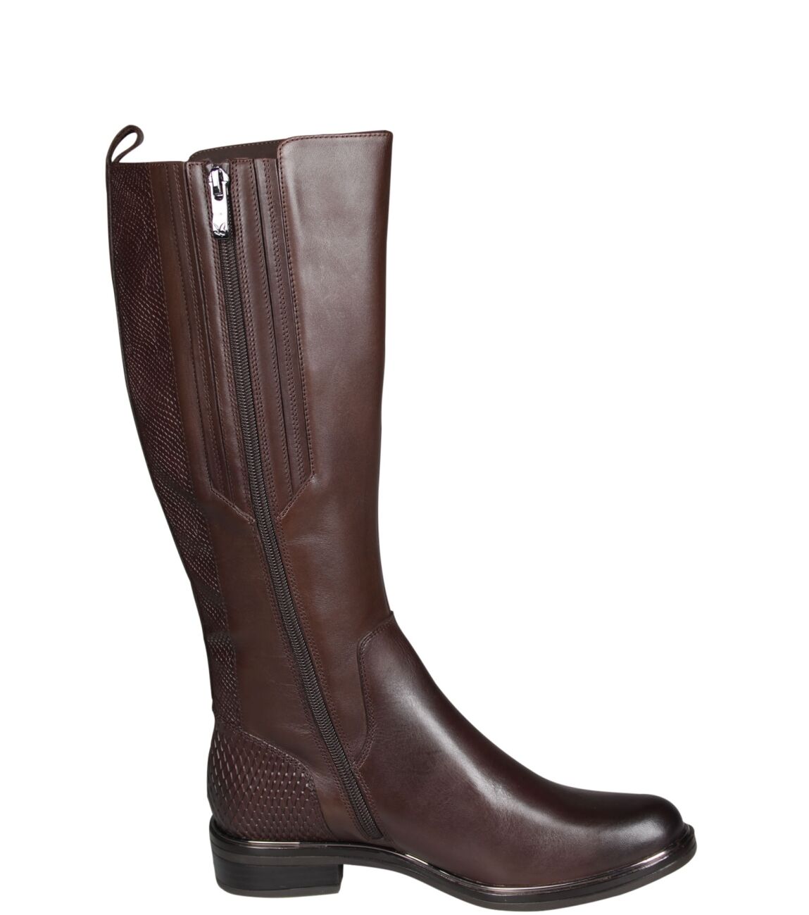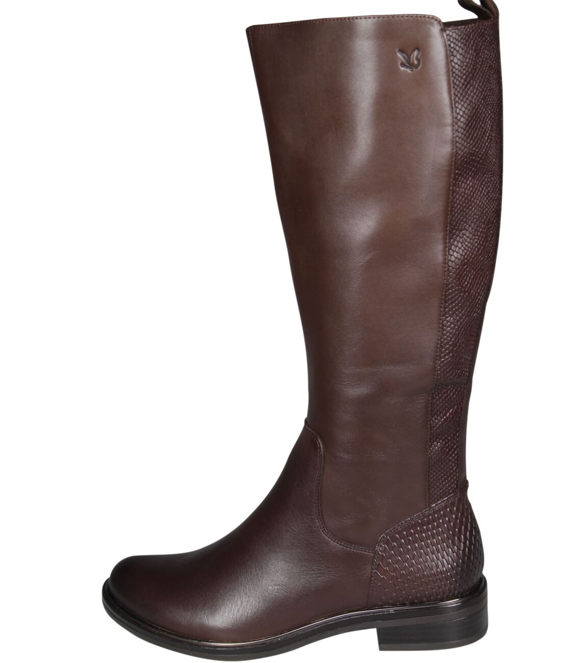 De 9-25515-45 lange laars van Caprice in wijdte G in 329 dk brown is gemaakt van leer en geschikt voor gemiddelde voeten.