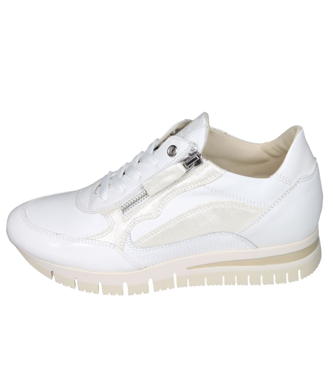 De 6926 sneaker van DL Sport in gloss bianco/alpina white is gemaakt van leer/metallic.