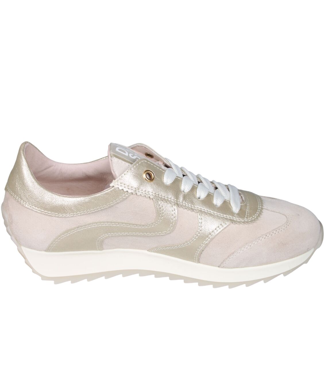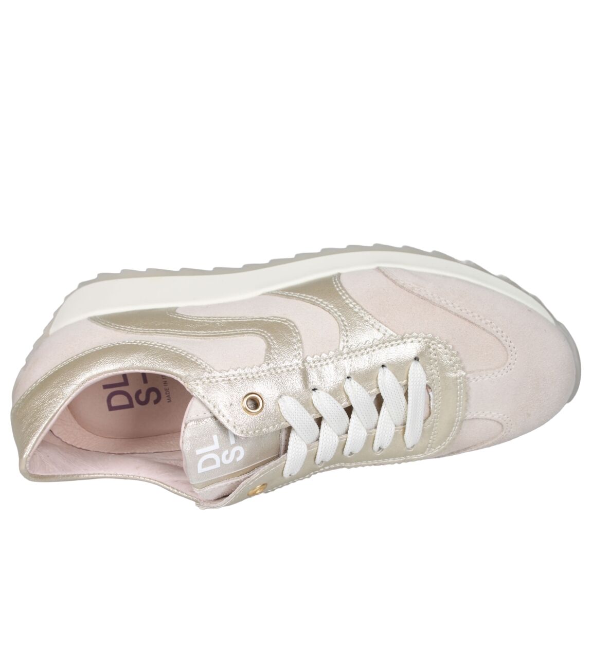 De 6989 sneaker van DL Sport in sheer dubai platino is gemaakt van suede.