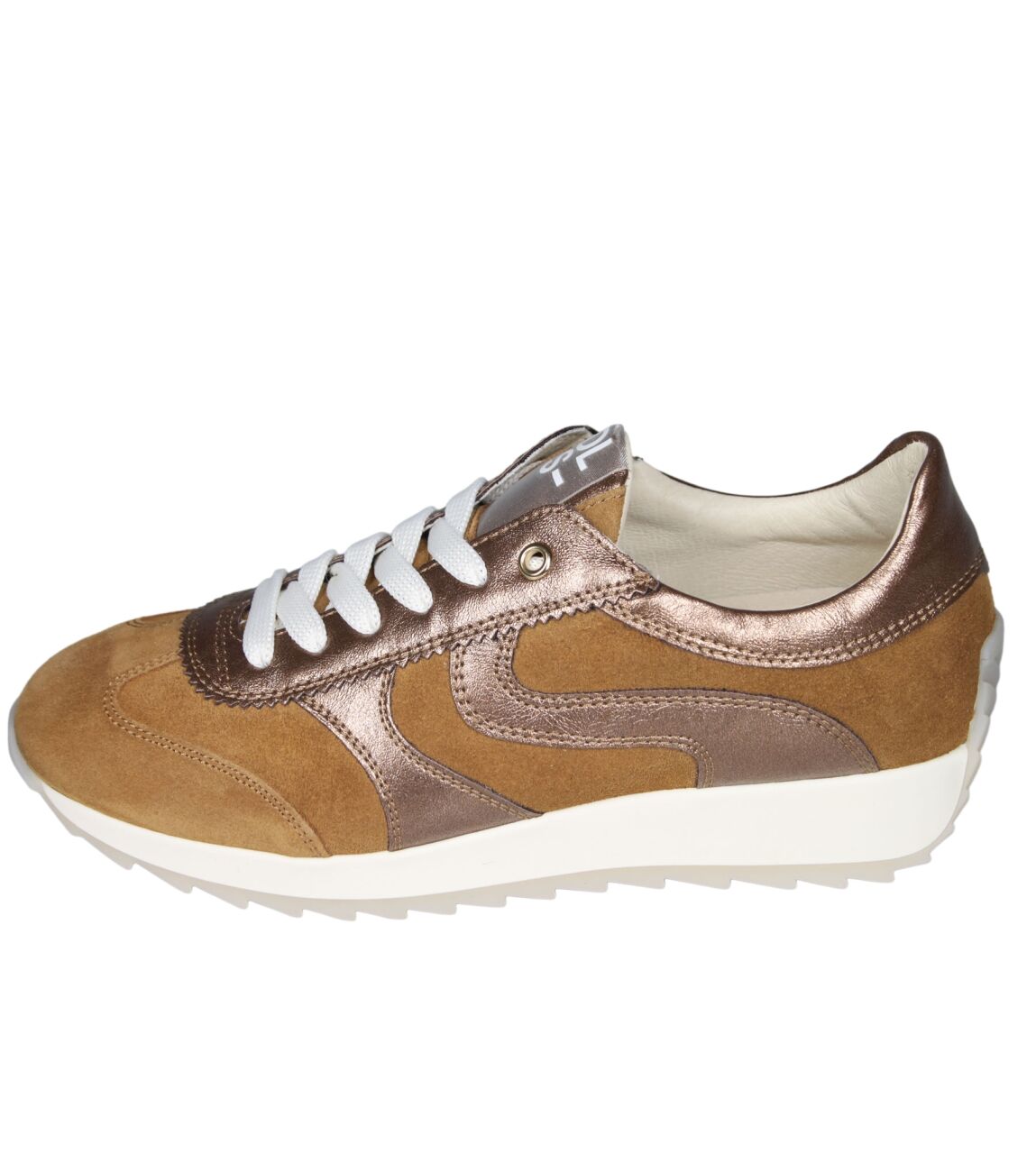 De 6989 sneaker van DL Sport in velour cammello/dubai ossido is gemaakt van suede/metallic.