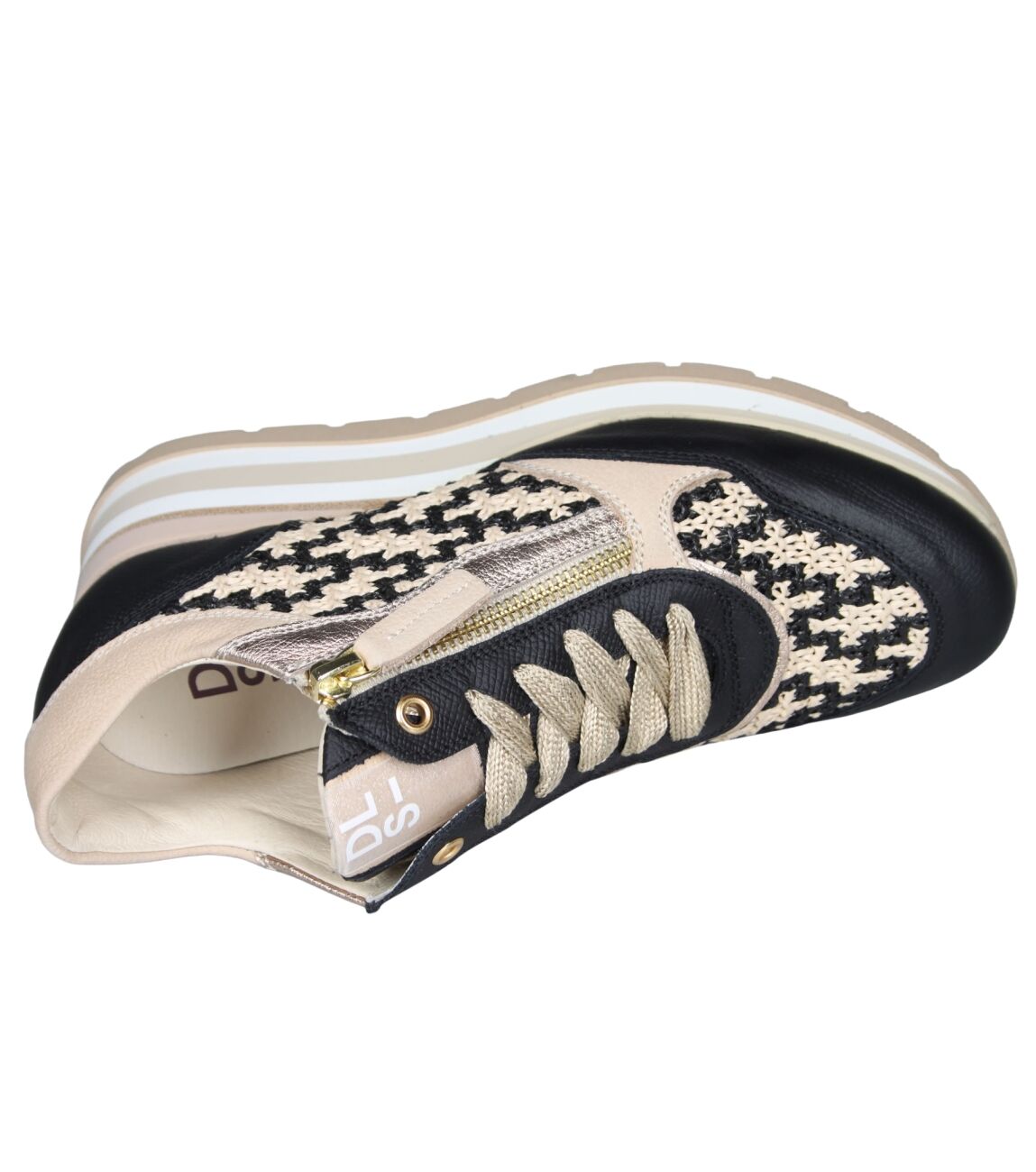 De 7006 sneaker van DL Sport in alpina nero/intre nero is gemaakt van leer/metallic.