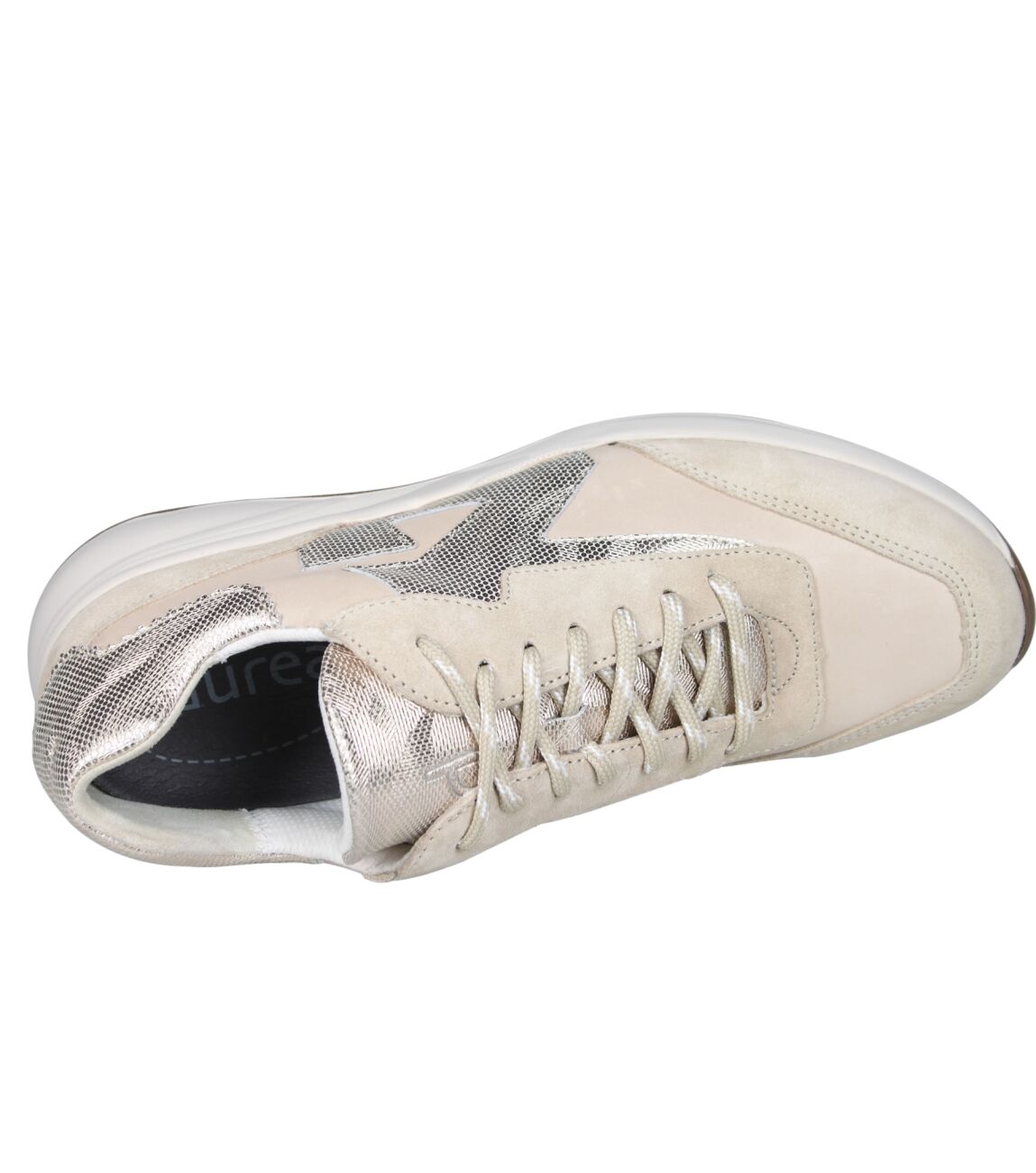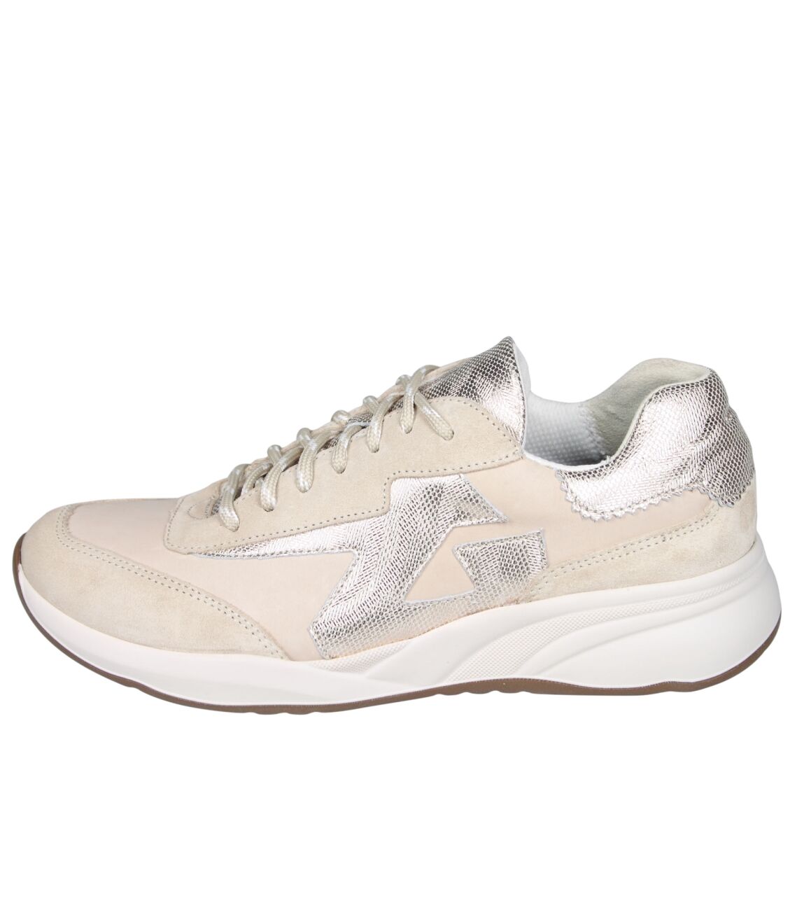De 6305.2140 sneaker van Durea in wijdte E in l.taupe/taupe/platin is gemaakt van suede/metallic en geschikt voor smalle voeten.
