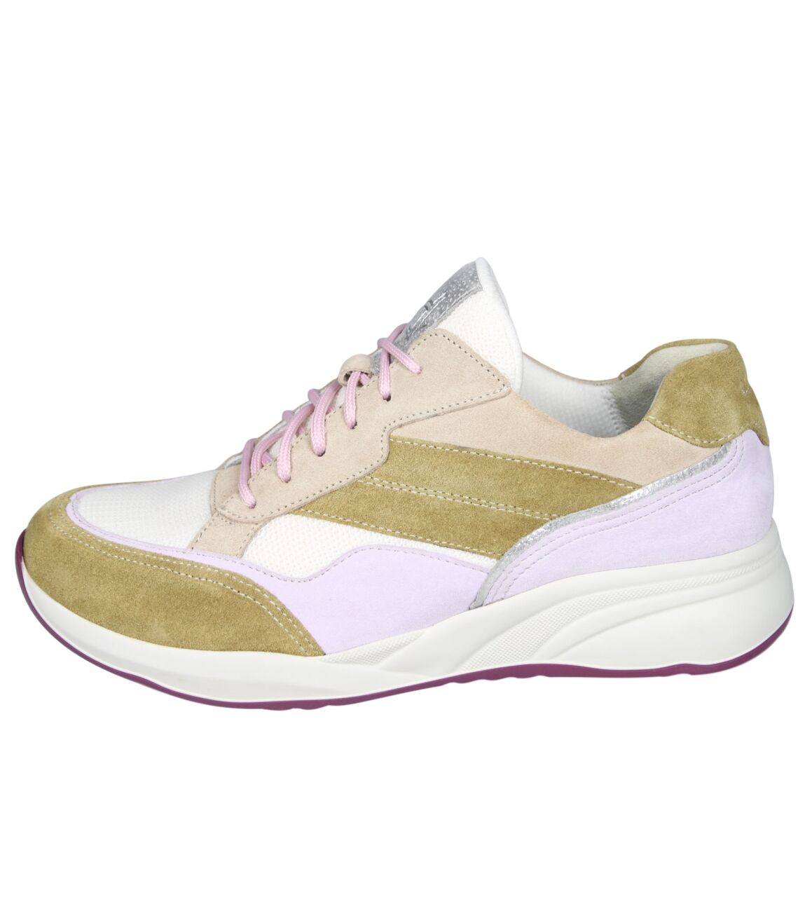 De 6308.1972 sneaker van Durea in wijdte H in groen/wit/zilver/grijs is gemaakt van mesh/suede en geschikt voor bredere voeten.