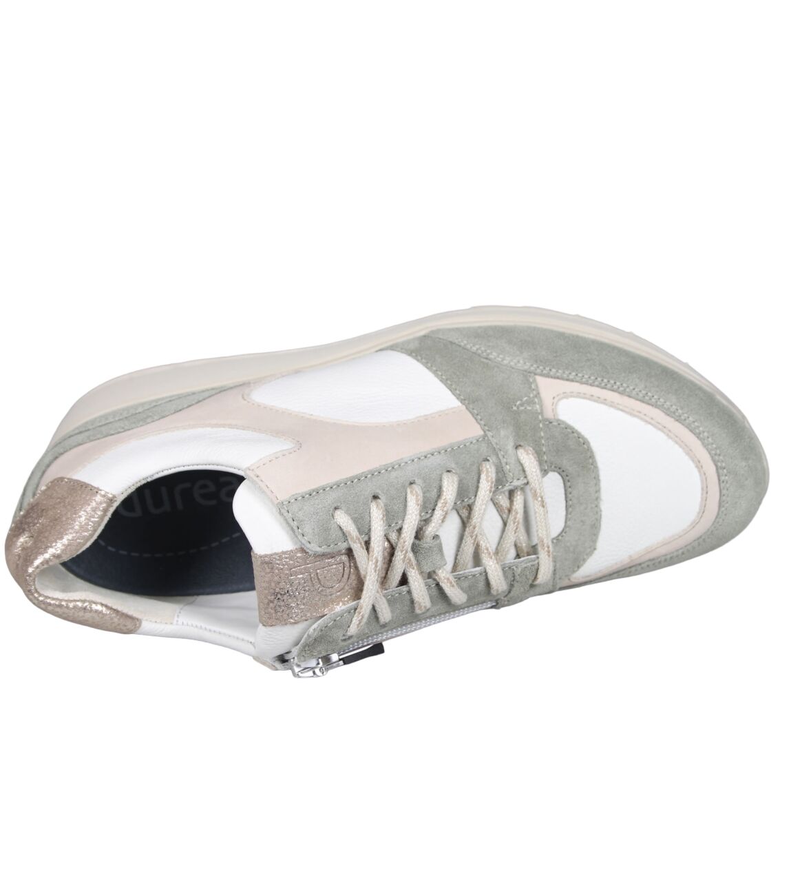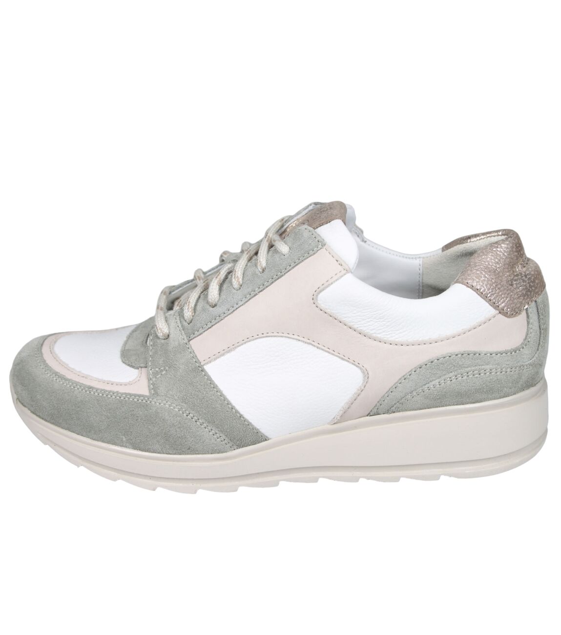 De 6315.2165 sneaker van Durea in wijdte K in hunter/taupe/wit is gemaakt van leer/suede en geschikt voor extra brede voeten.