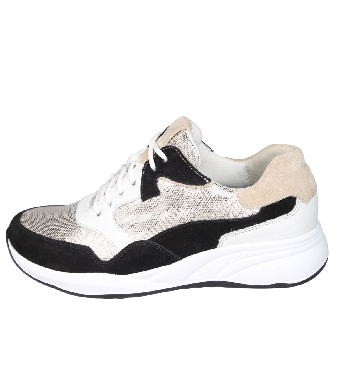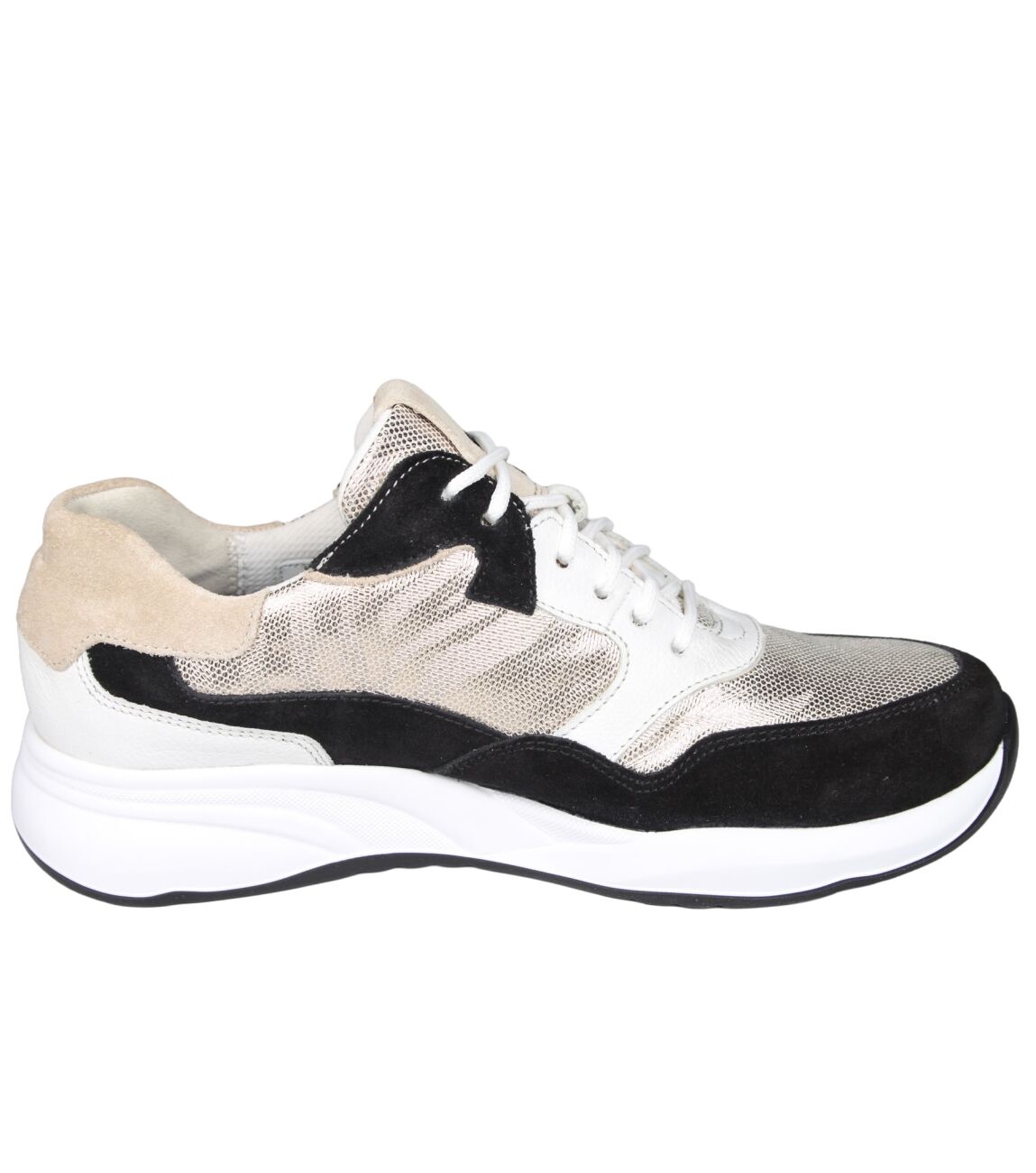 De 6317.2064 sneaker van Durea in wijdte H in zwart/platin/wit/l.taupe is gemaakt van leer/suede/metallic en geschikt voor bredere voeten.
