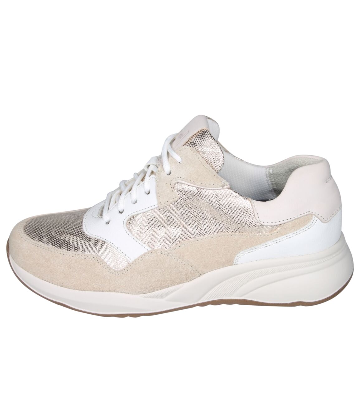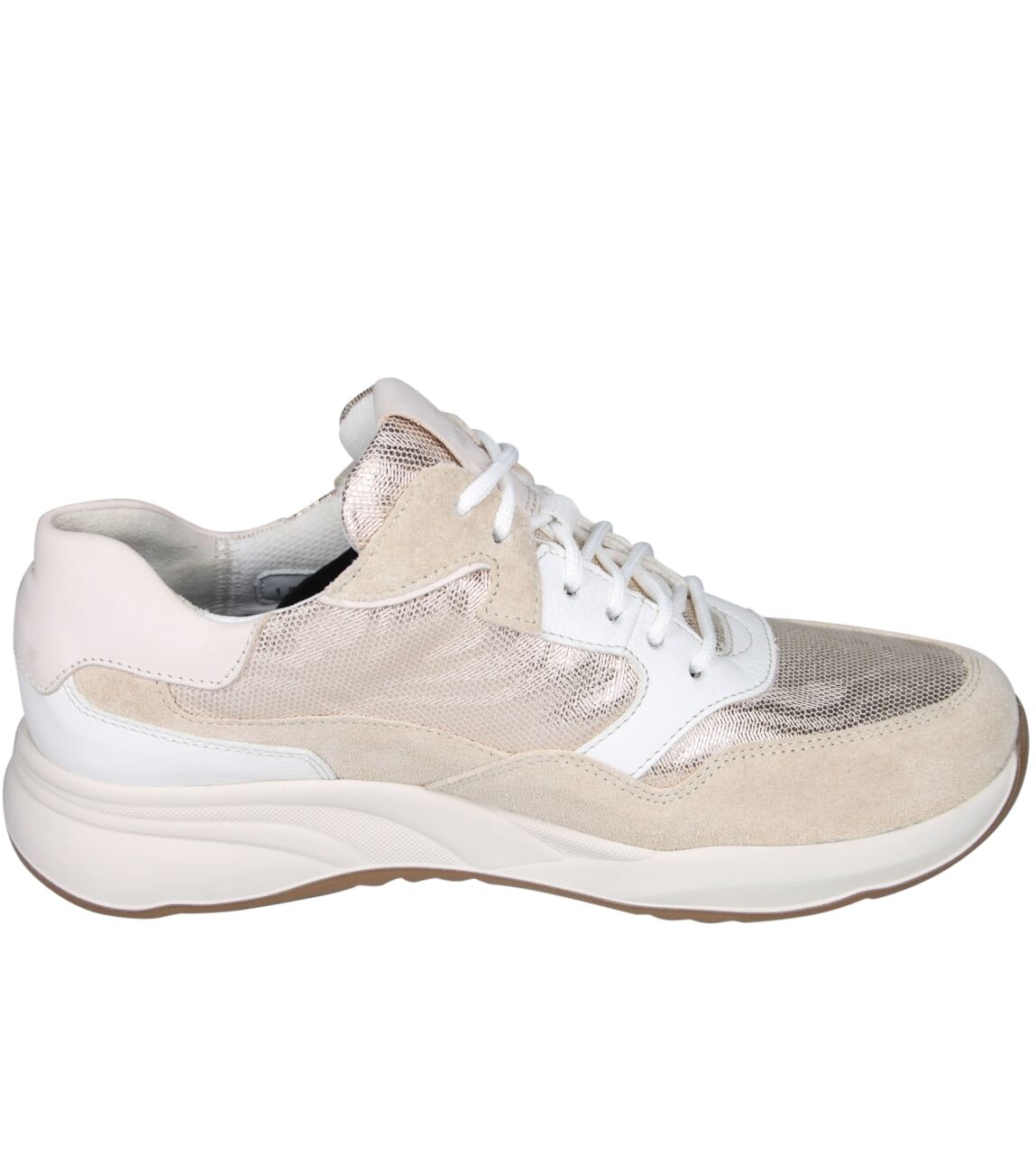 De 6317.2066 sneaker van Durea in wijdte H in l.taupe/platin/wit is gemaakt van leer/suede/metallic en geschikt voor bredere voeten.
