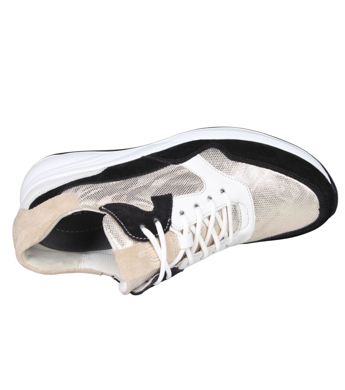De 6317.2064 sneaker van Durea in wijdte K in zwart/platin/wit/l.taupe is gemaakt van leer/suede/metallic en geschikt voor extra brede voeten.