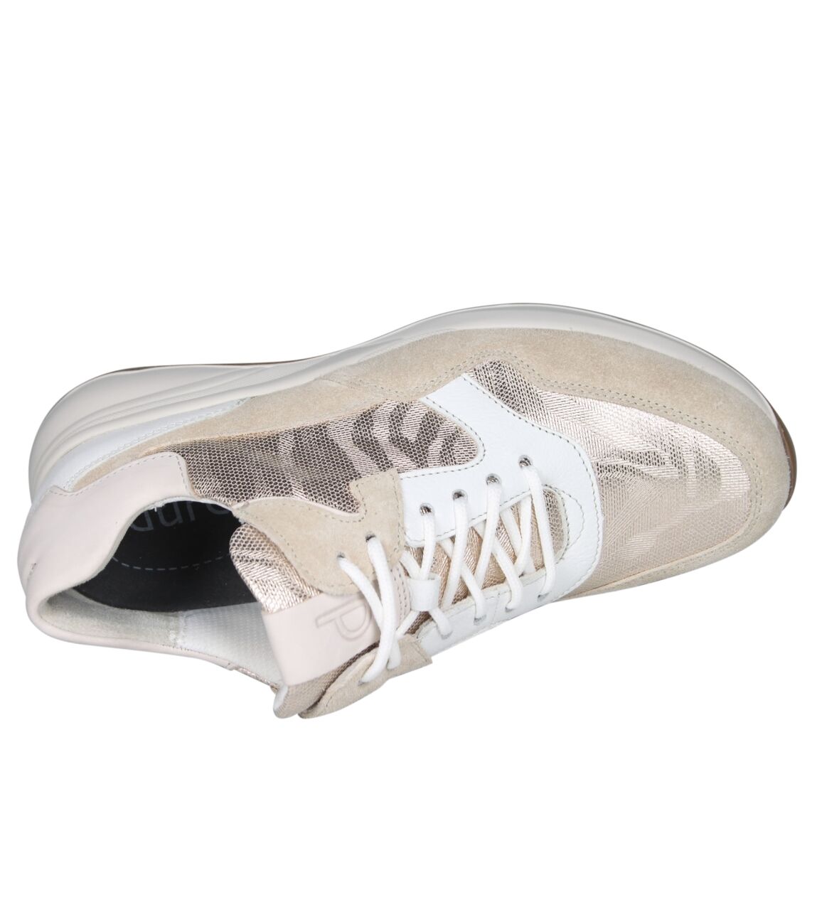 De 6317.2066 sneaker van Durea in wijdte K in l.taupe/platin/wit is gemaakt van leer/suede/metallic en geschikt voor extra brede voeten.