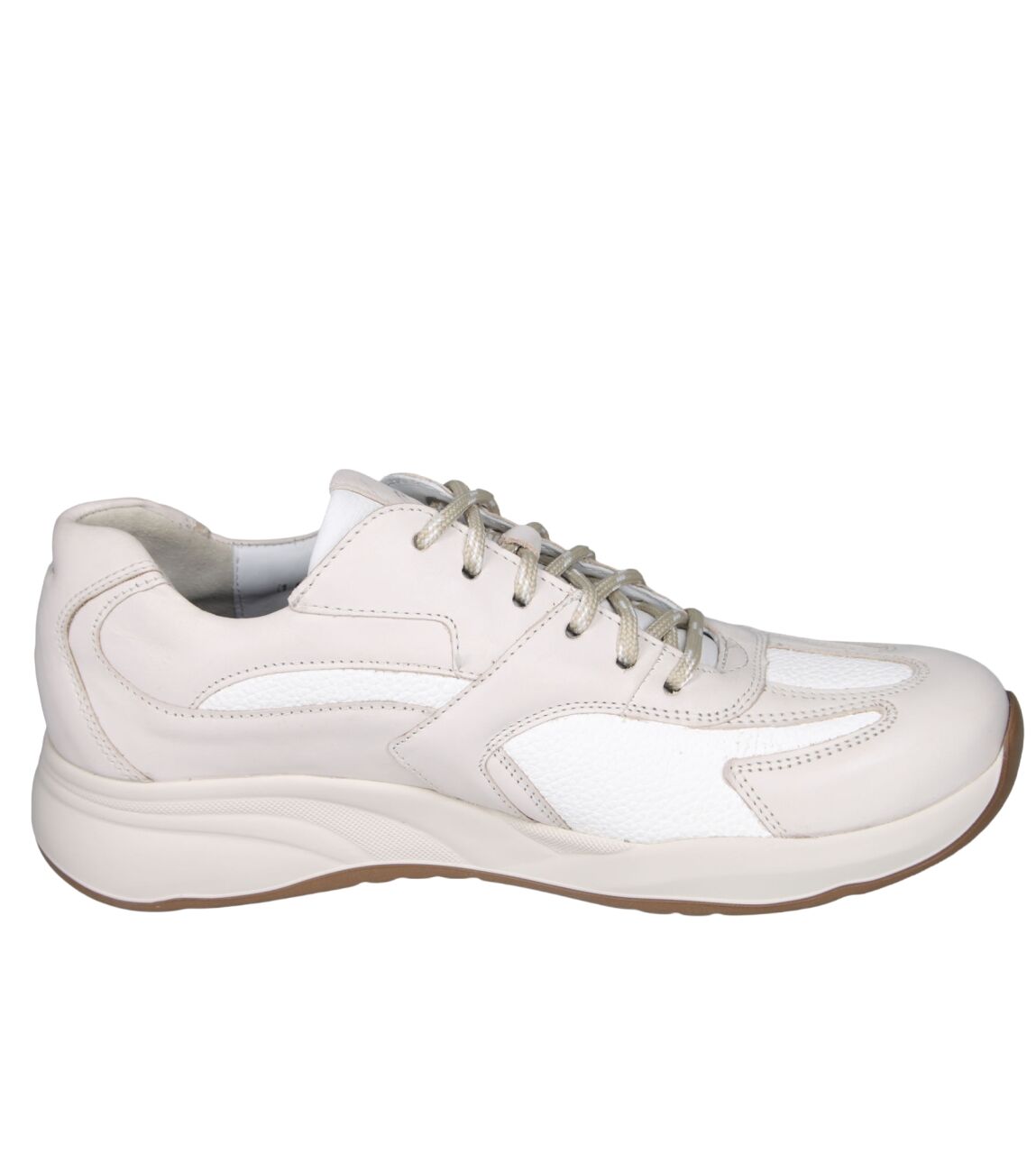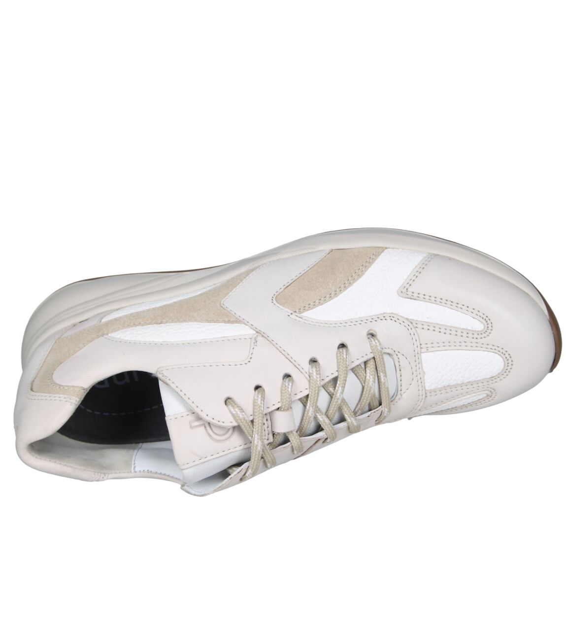 De 6316.2080 sneaker van Durea Flex in wijdte K in offwhite/l.taupe is gemaakt van stretch leer en geschikt voor extra brede voeten.