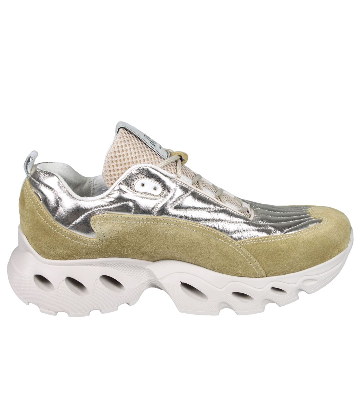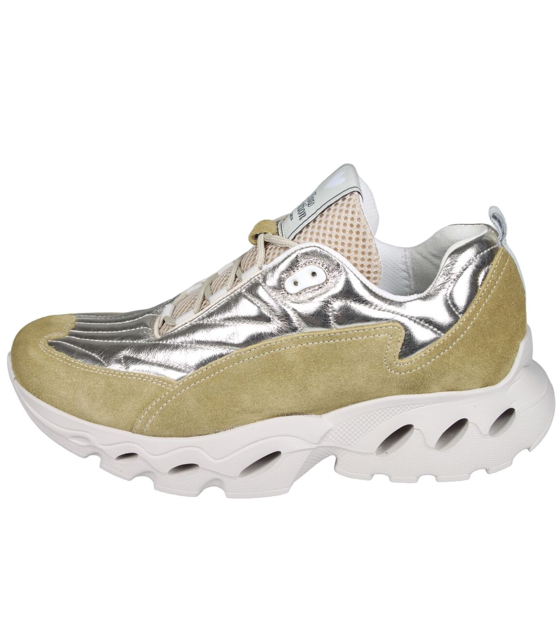 De 6311.2091 sneaker van Durea FlowMotion in wijdte H in soupe/beige is gemaakt van suede/metallic en geschikt voor bredere voeten.