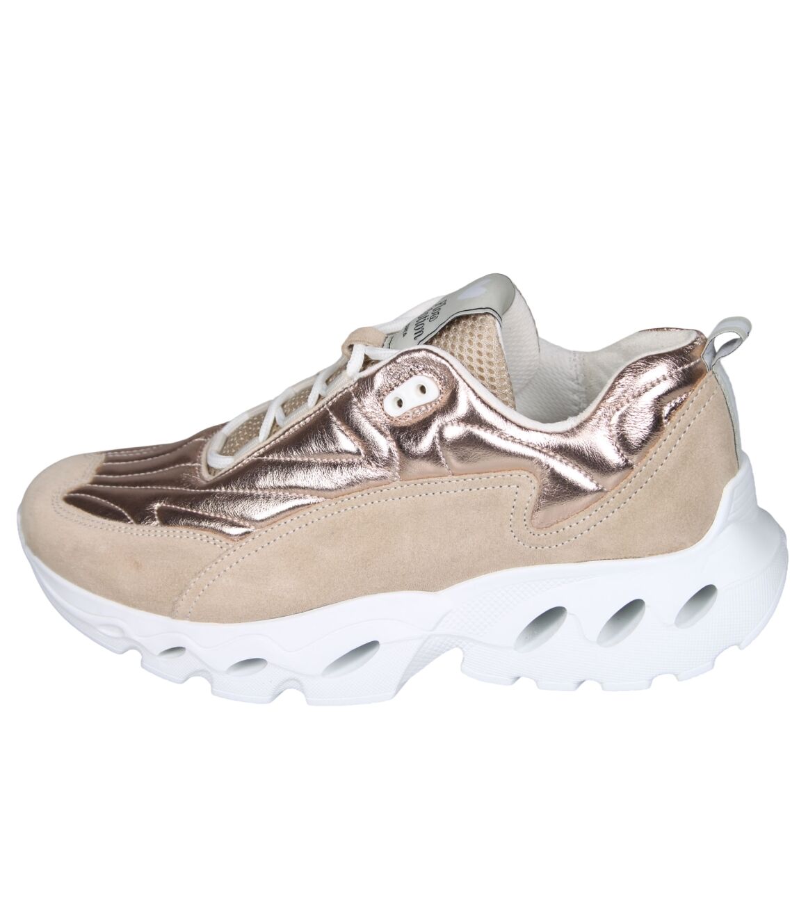 De 6311.2019 sneaker van Durea FlowMotion in wijdte K in l.taupe/rame/taupe is gemaakt van suede/metallic en geschikt voor extra brede voeten.