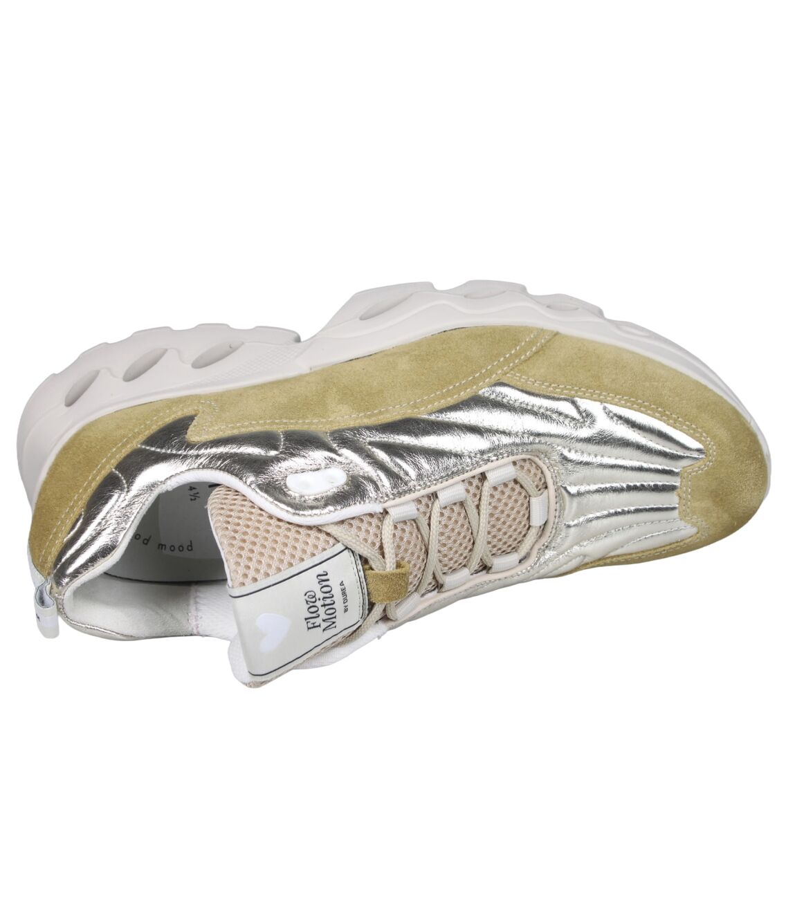 De 6311.2091 sneaker van Durea FlowMotion in wijdte K in soupe/beige is gemaakt van suede/metallic en geschikt voor extra brede voeten.