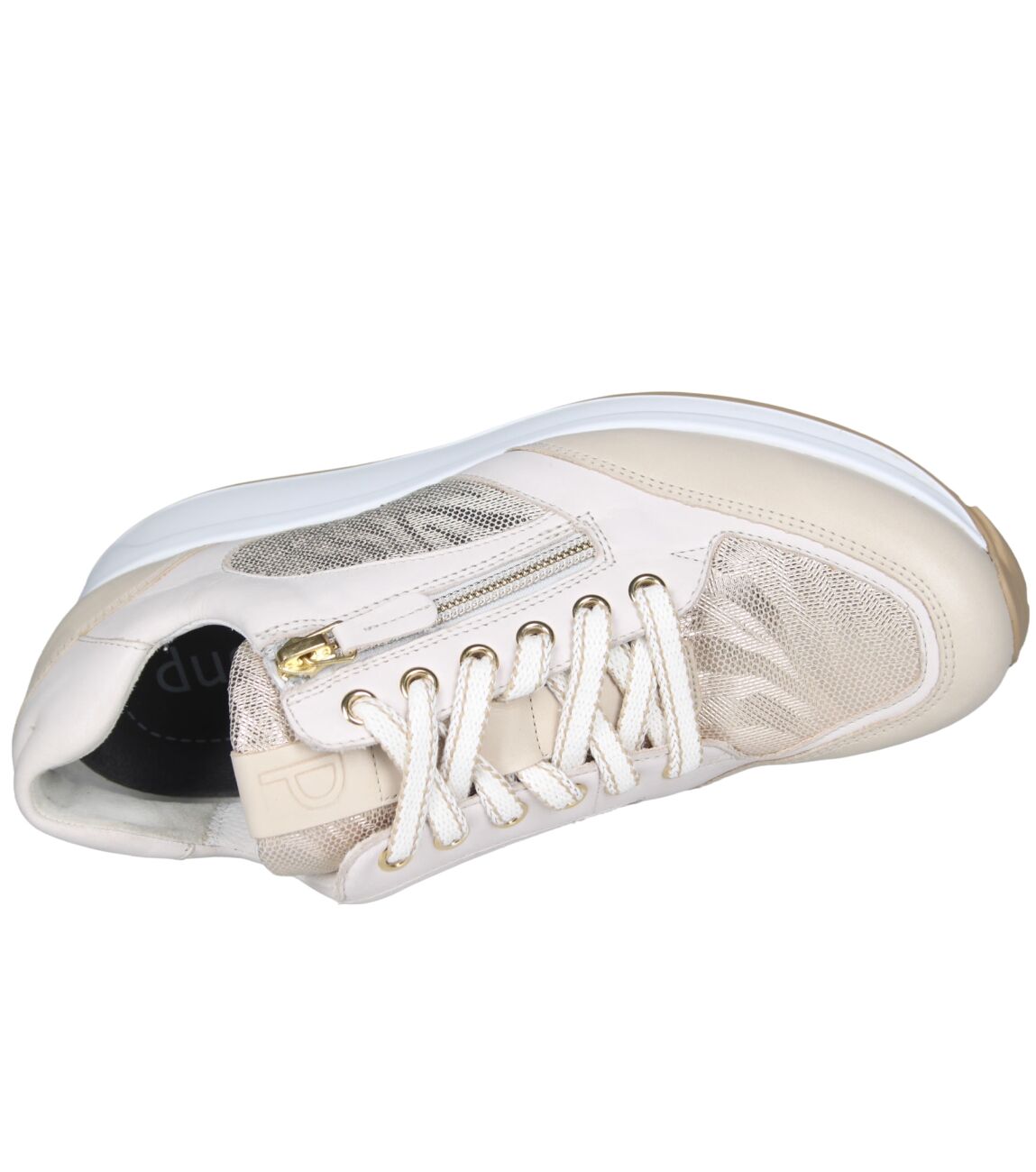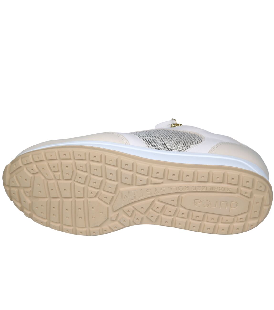 De 6322.2153 sneaker van Durea Stabilized Roll System in wijdte E in beige/offwhite/platin is gemaakt van leer/metallic en geschikt voor smalle voeten.