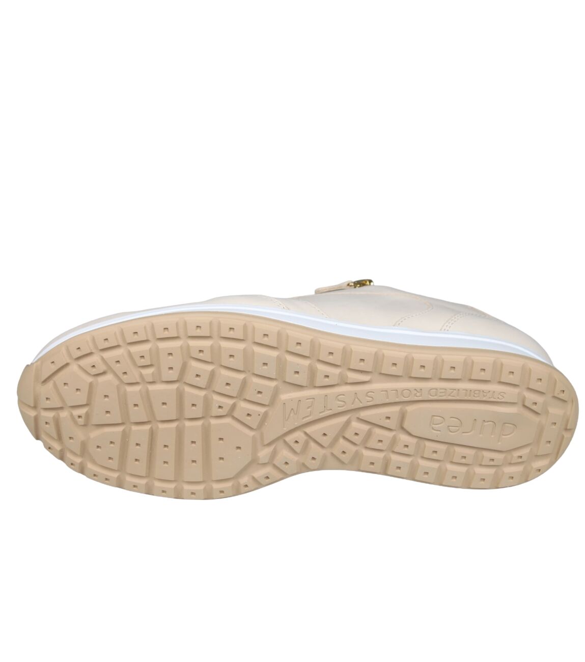 De 6322.2122 sneaker van Durea Stabilized Roll System in wijdte H in beige is gemaakt van leer en geschikt voor bredere voeten.