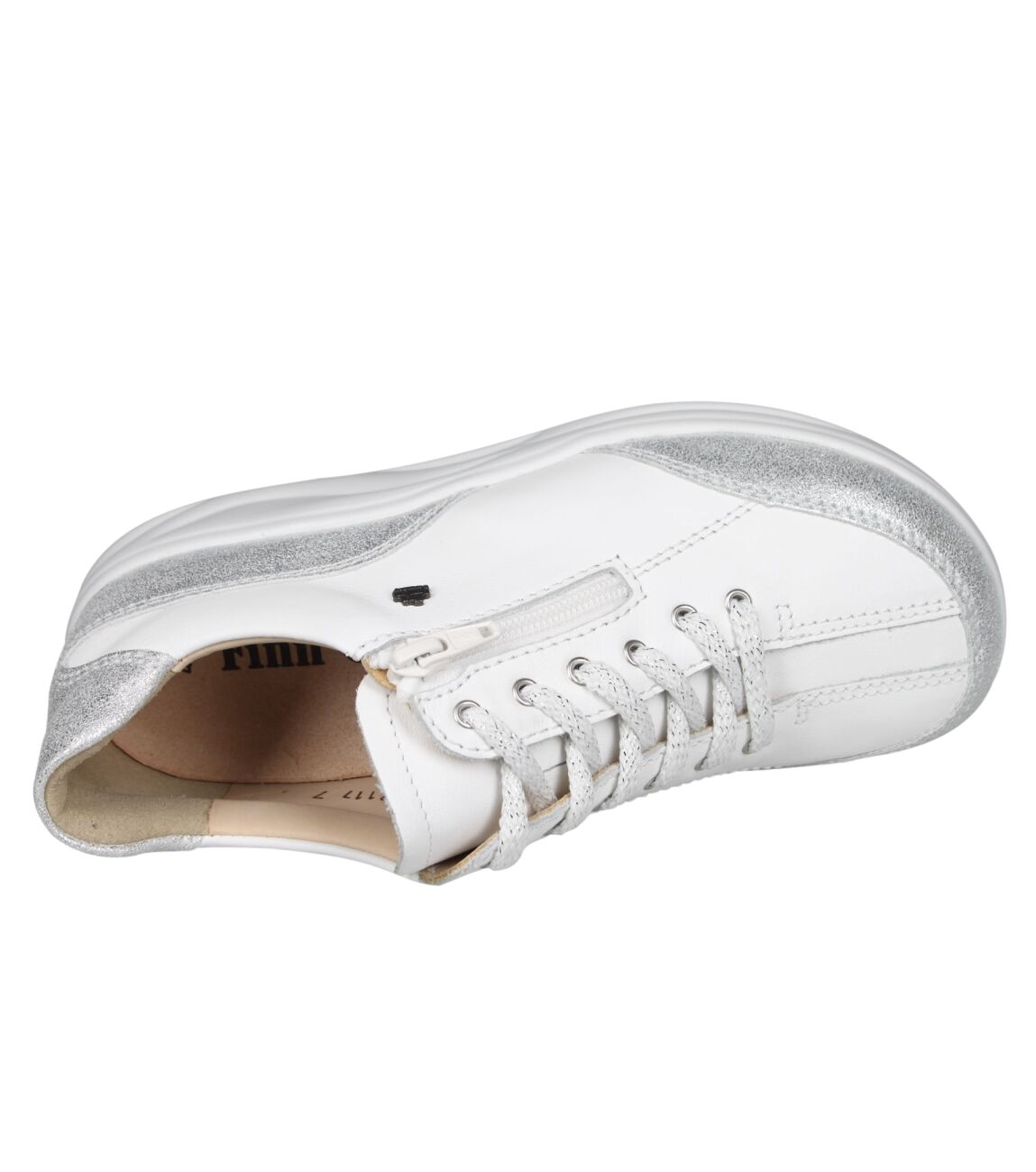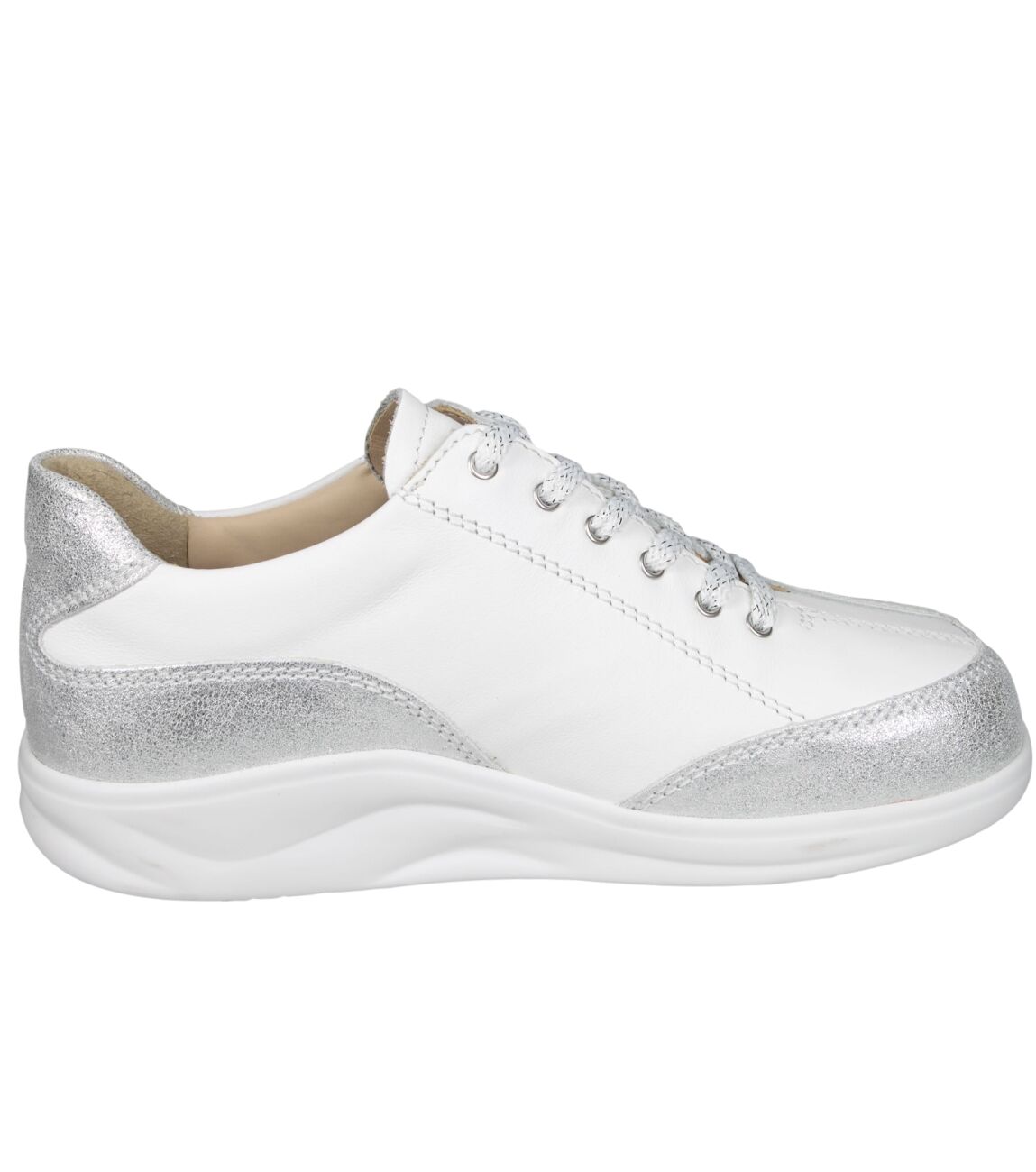 De 2913 Otaru veterschoen van Finn Comfort Finnamic in 903071 silber/bianco is gemaakt van leer/metallic.