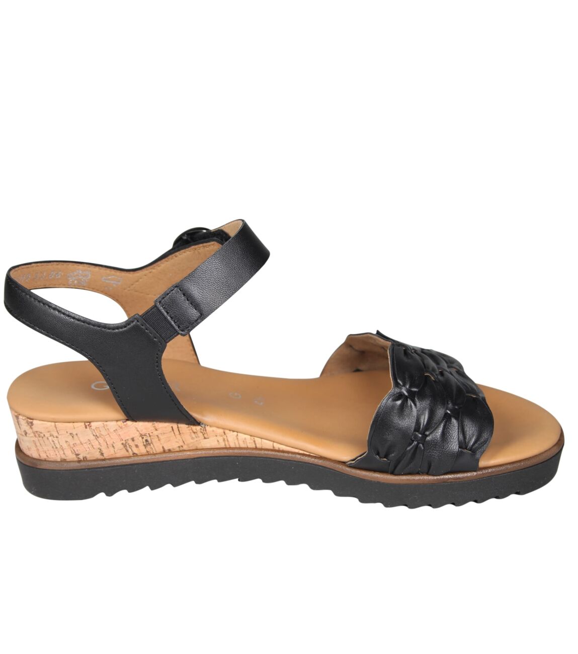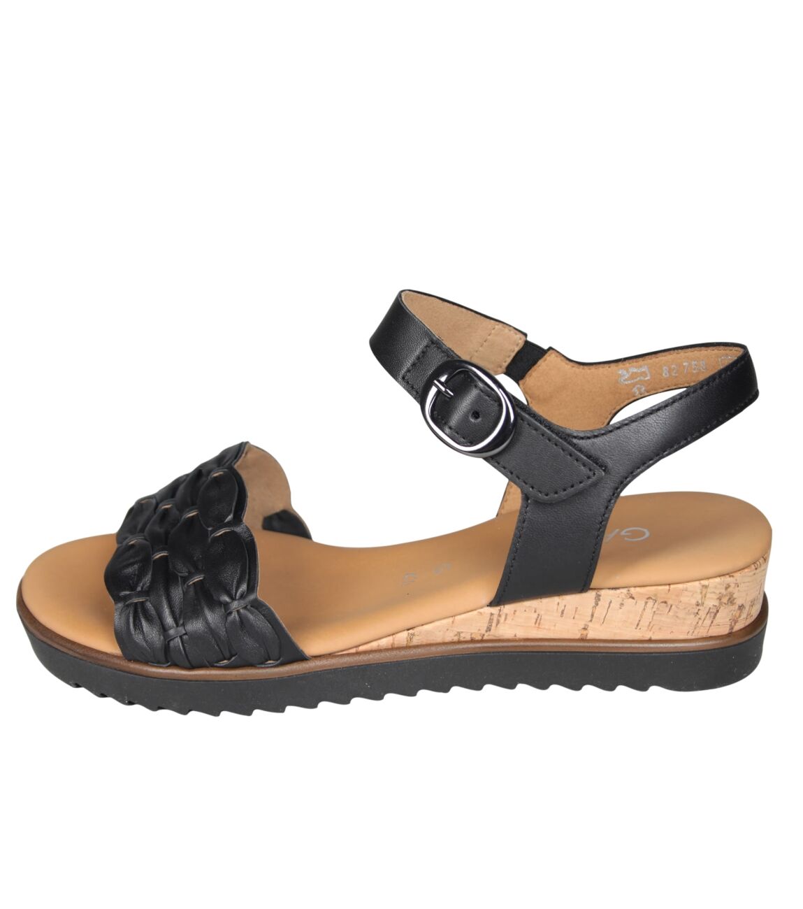 De 82.758.57 sandal van Gabor in wijdte G in schwarz (kork) is gemaakt van leer en geschikt voor gemiddelde voeten.