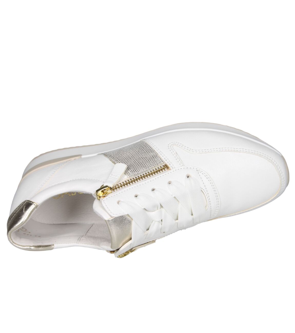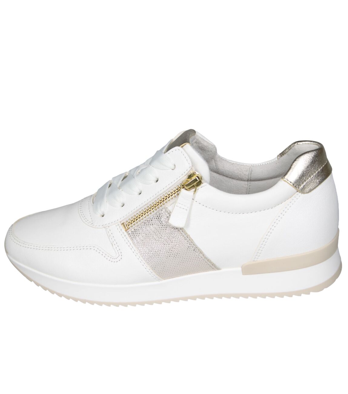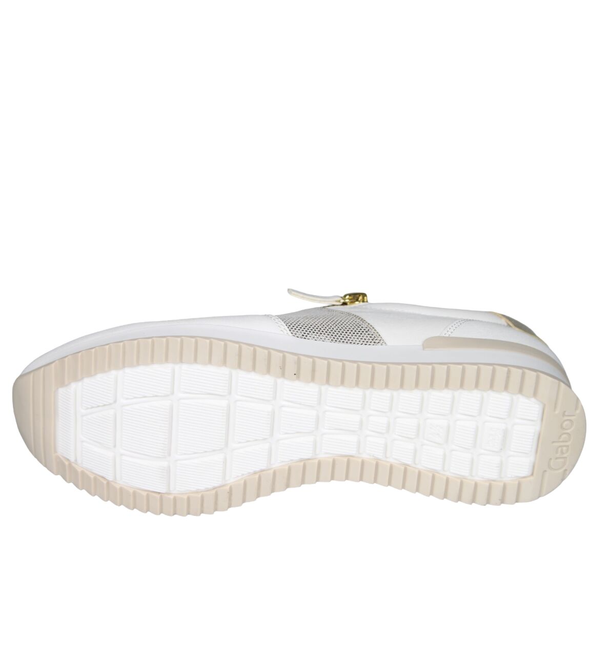 De 83.420.20 sneaker van Gabor in latte/platino is gemaakt van leer/metallic.