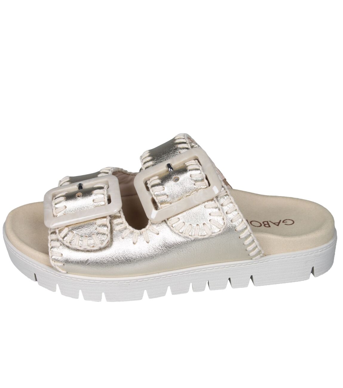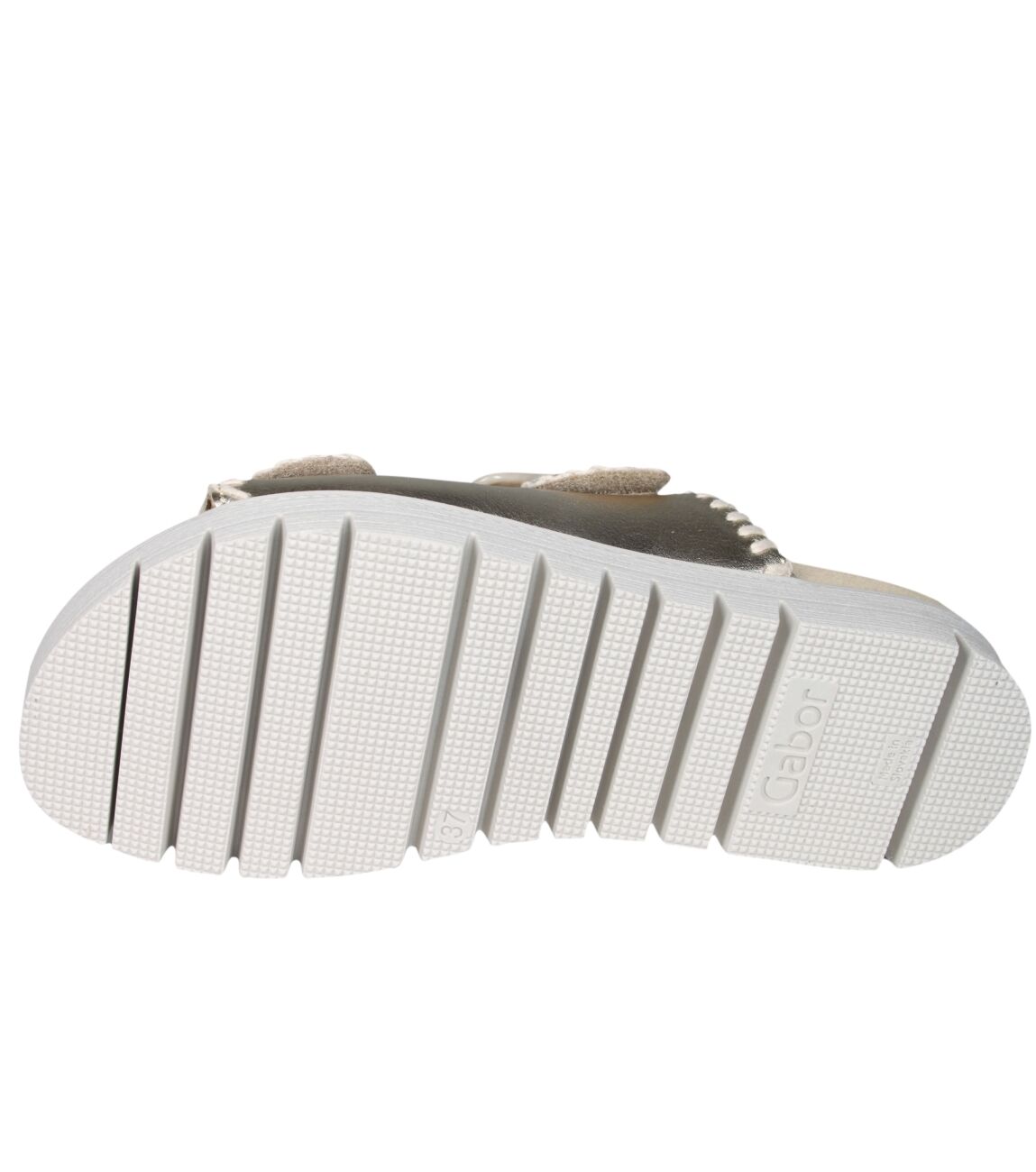 De 83.741.62 slipper van Gabor in platino is gemaakt van metallic.