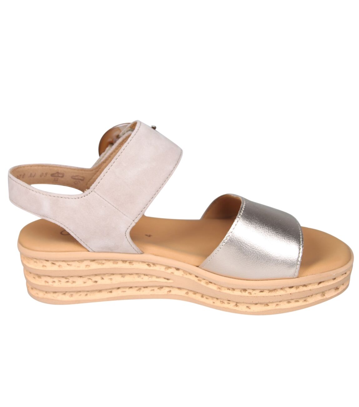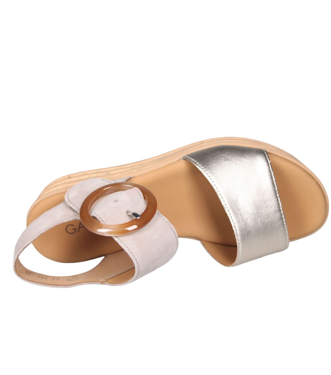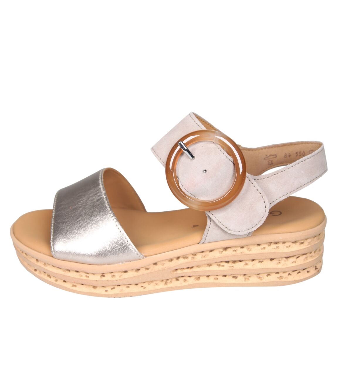 De 84.550.62 sandal van Gabor in puder/rabbit is gemaakt van leer/metallic.