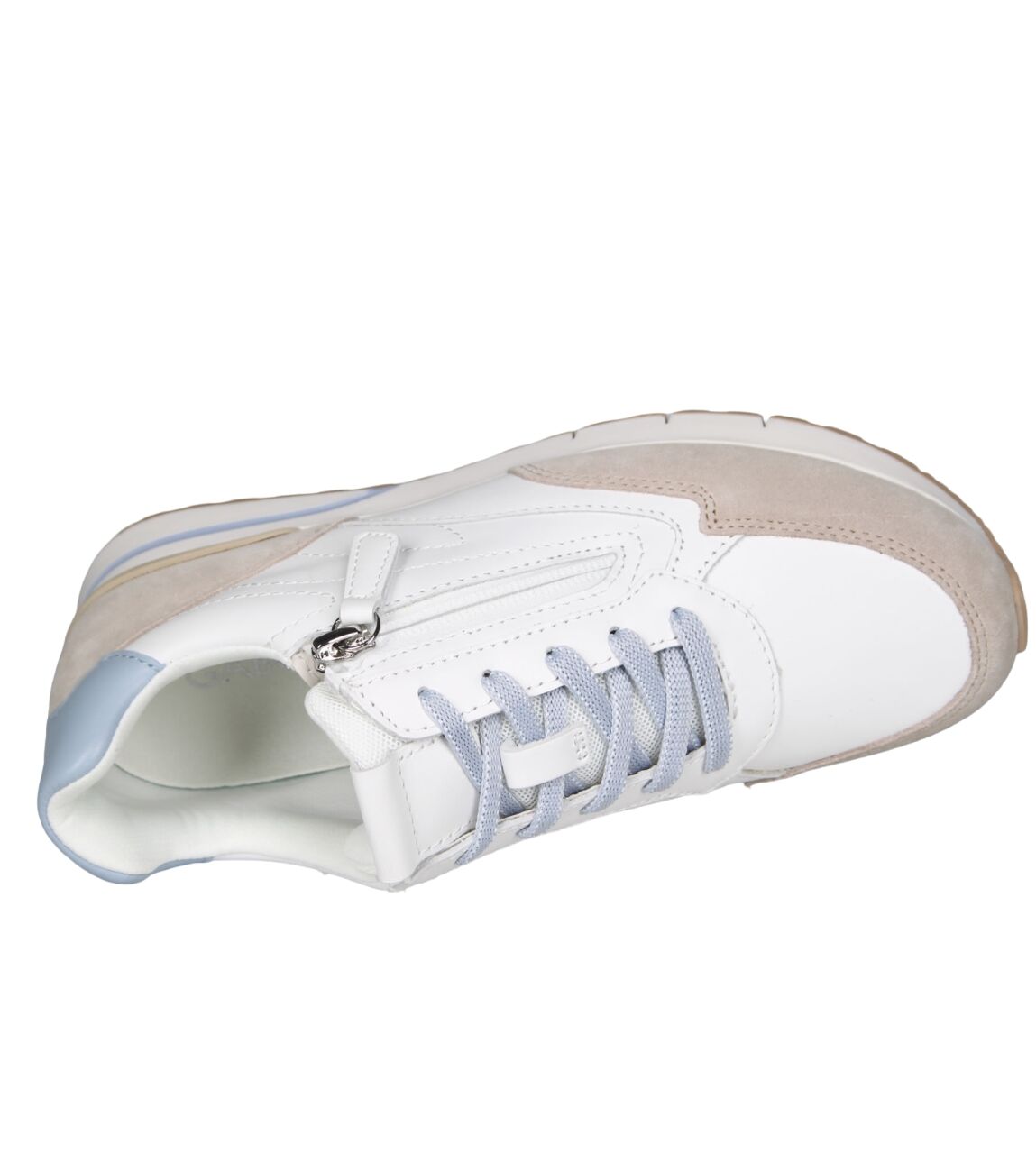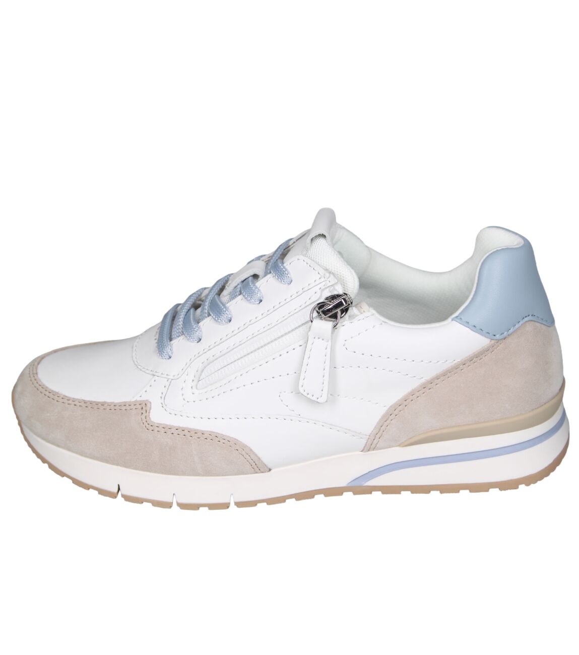 De 86.327.56 sneaker van Gabor in wijdte G in weiss/oak/sky is gemaakt van leer/suede en geschikt voor gemiddelde voeten.