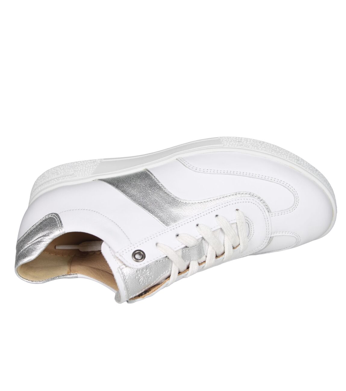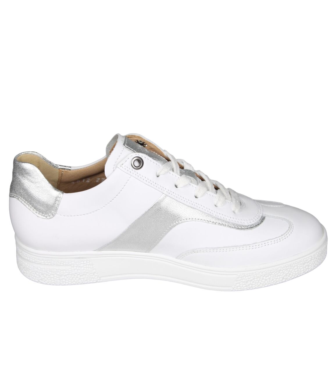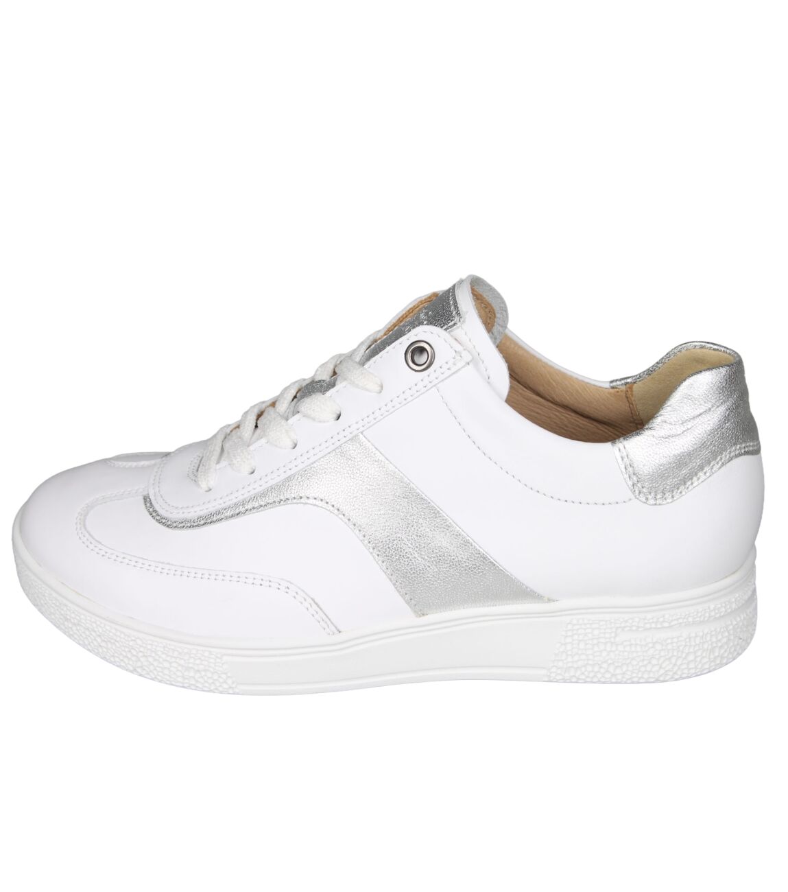De 162.2702/11 Sophie sneaker van Hartjes in wijdte H in 02/59 weiss-silber is gemaakt van leer/metallic en geschikt voor bredere voeten.