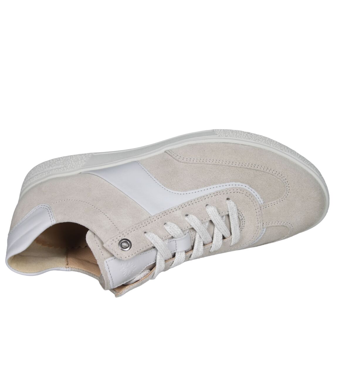 De 162.2702/31 Sophie sneaker van Hartjes in wijdte H in 03/13 creme-grau is gemaakt van suede/metallic en geschikt voor bredere voeten.