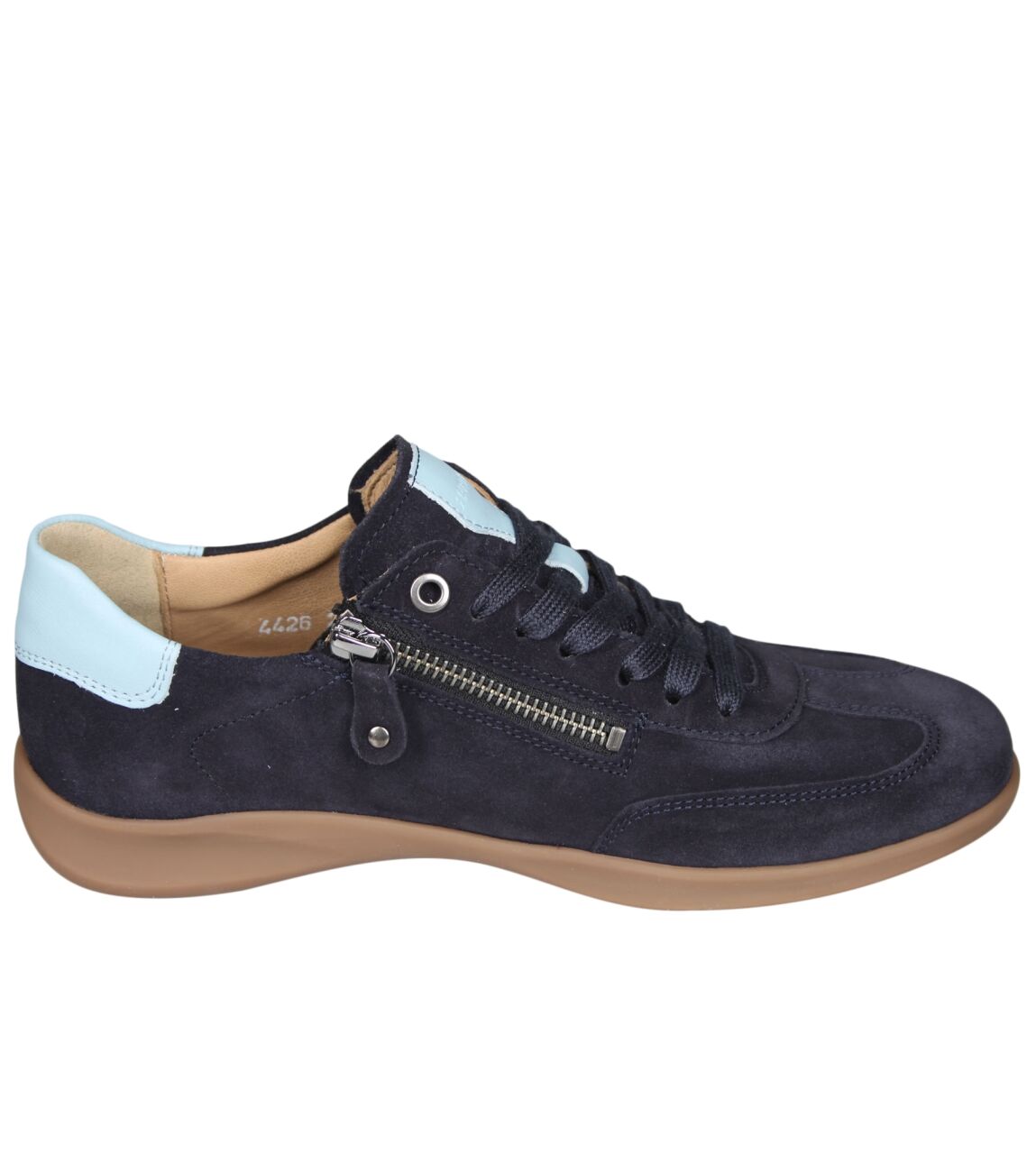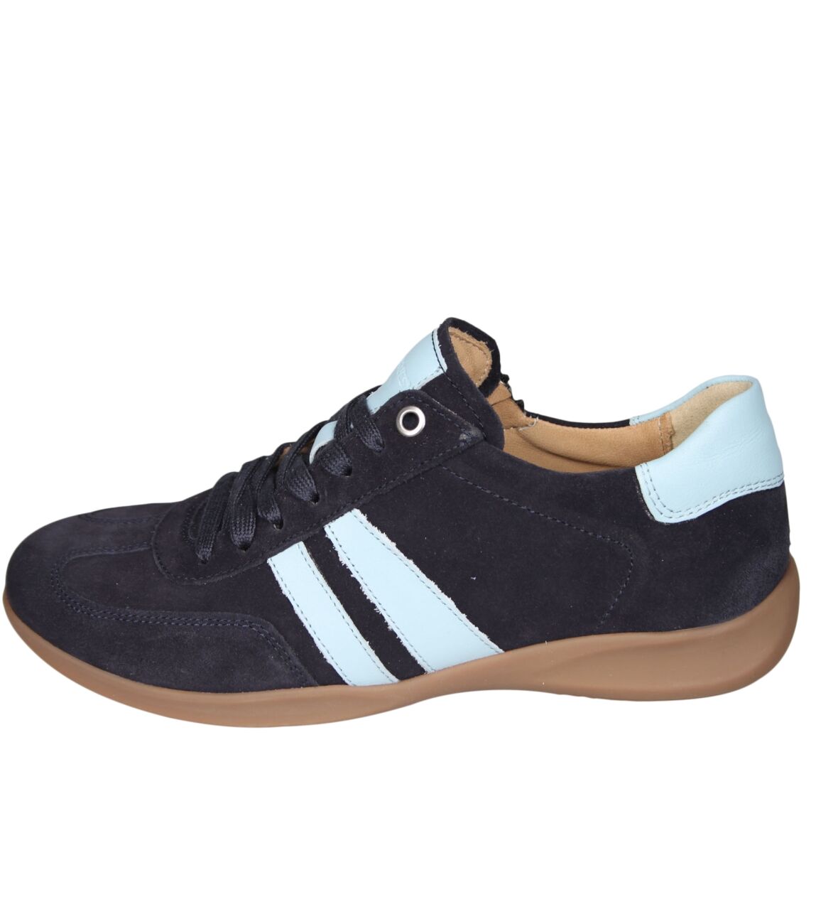 De 162.2106/31 sneaker van Hartjes Goa in wijdte G in 47/42 dunkelblau-aqua is gemaakt van leer/suede en geschikt voor gemiddelde voeten.