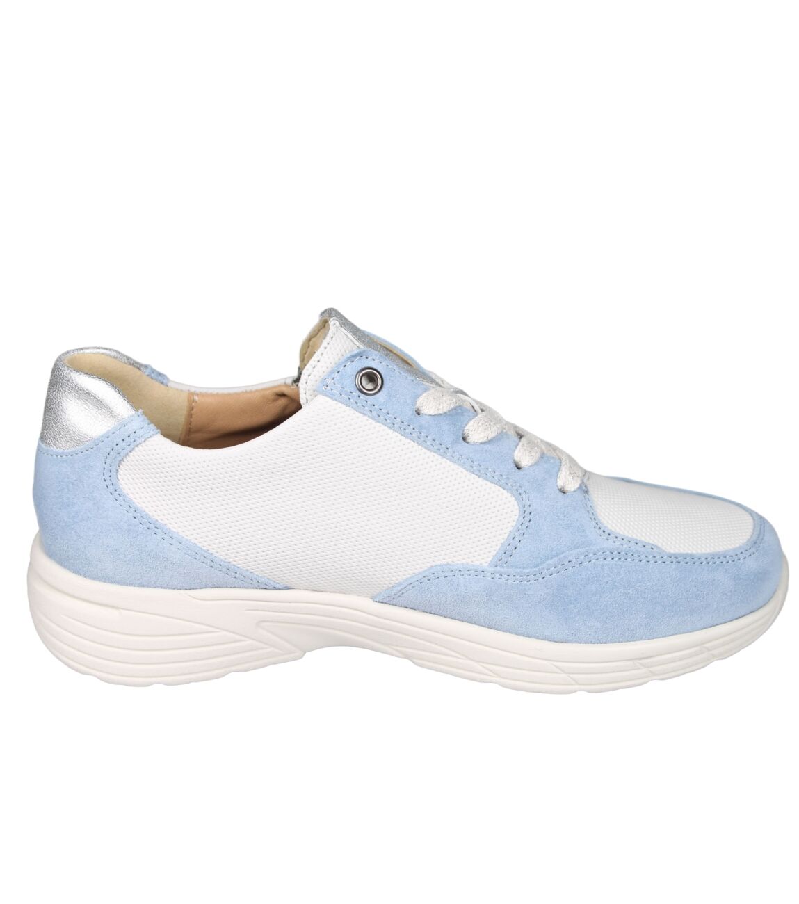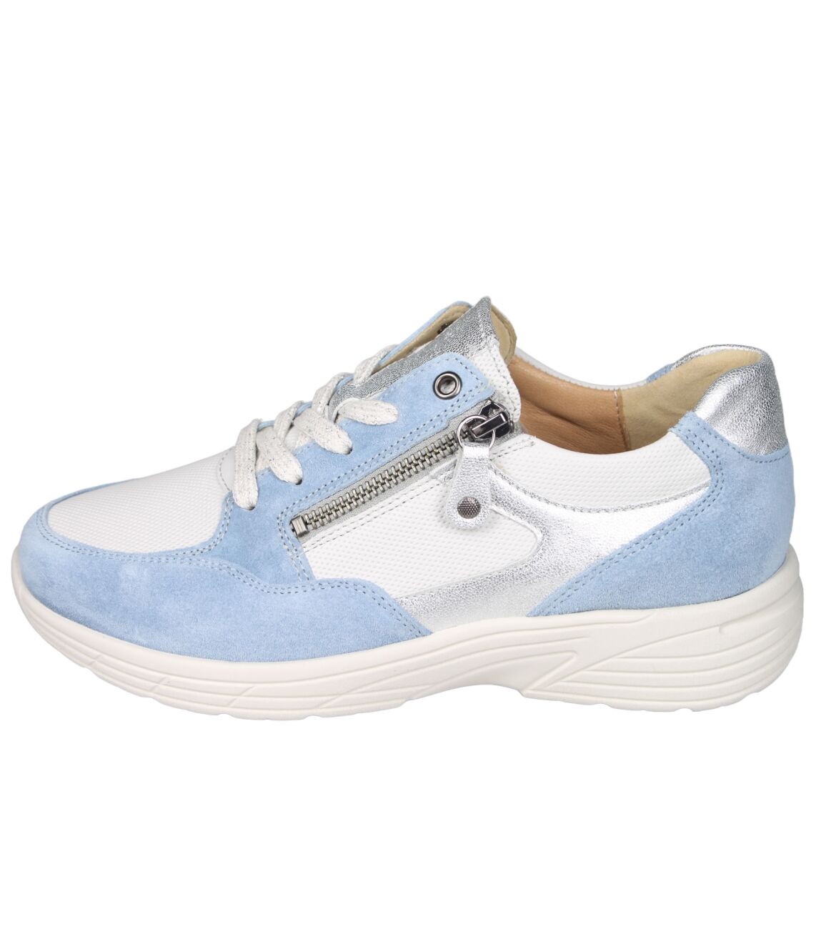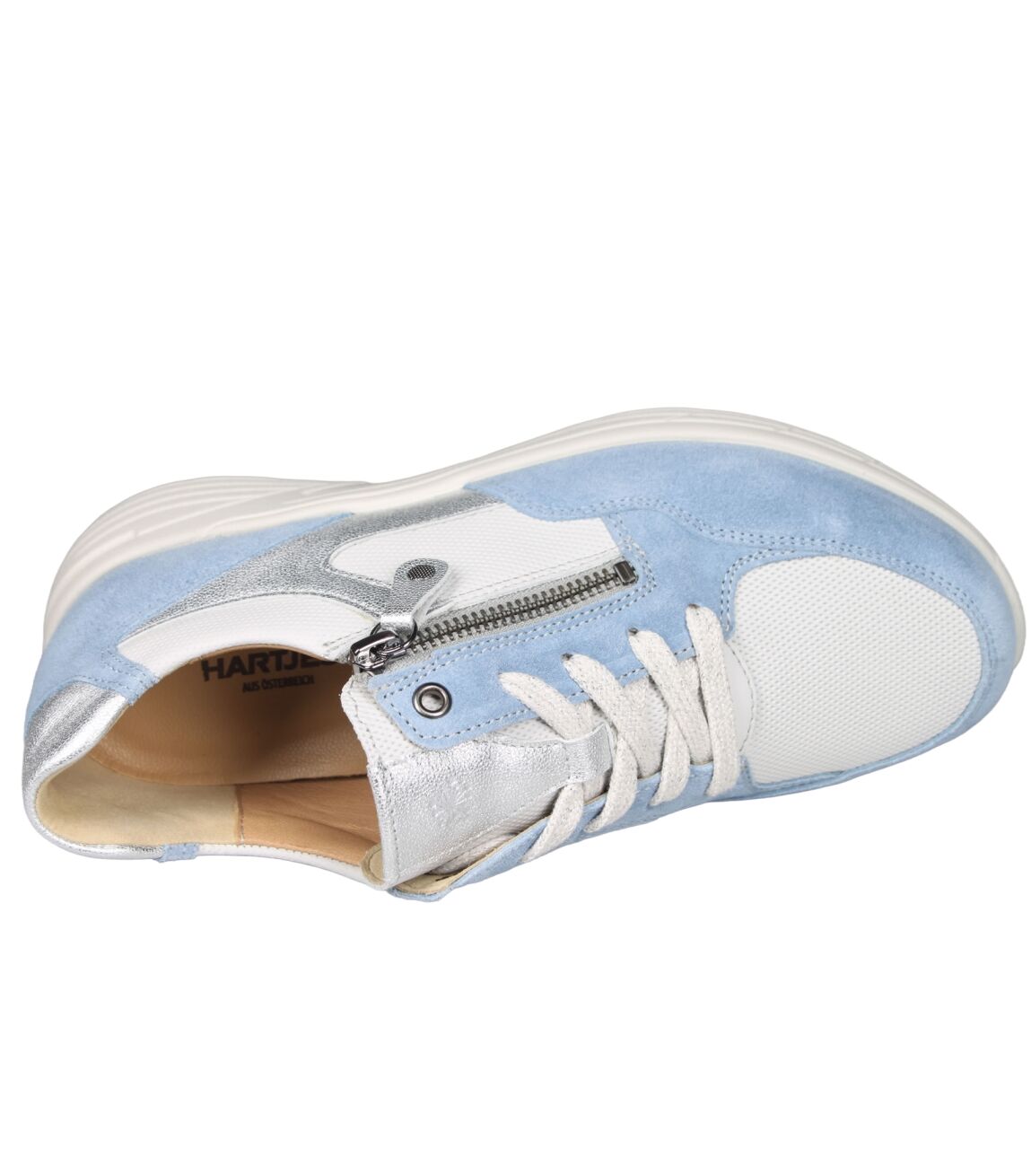De 162.2603/31 sneaker van Hartjes Katy in wijdte K in 43/17 heaven-eisgrau is gemaakt van leer/suede/metallic en geschikt voor extra brede voeten.