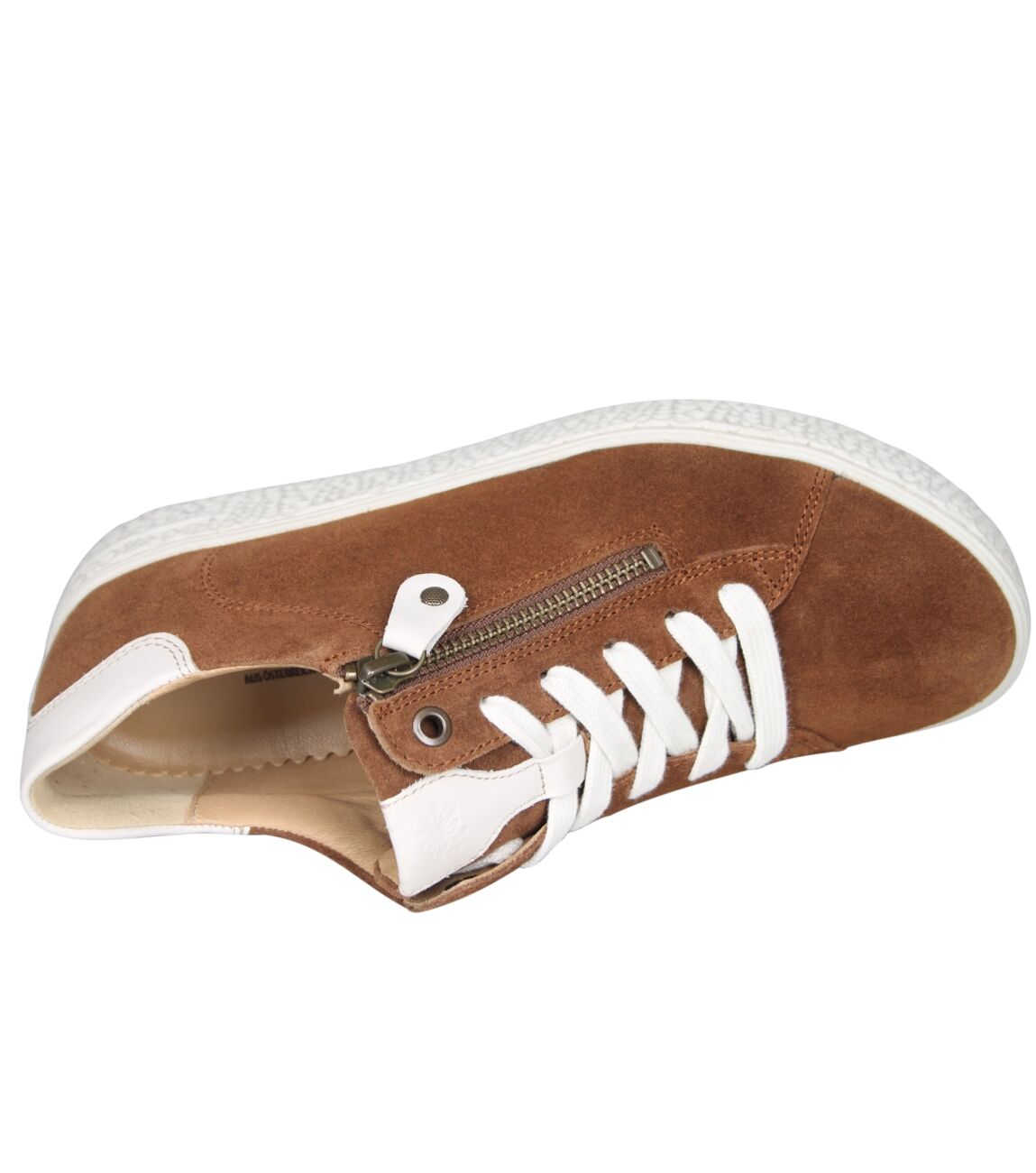 De 162.1401/31 sneaker van Hartjes Phil in wijdte H in 53/32 cognac-beige is gemaakt van suede en geschikt voor bredere voeten.
