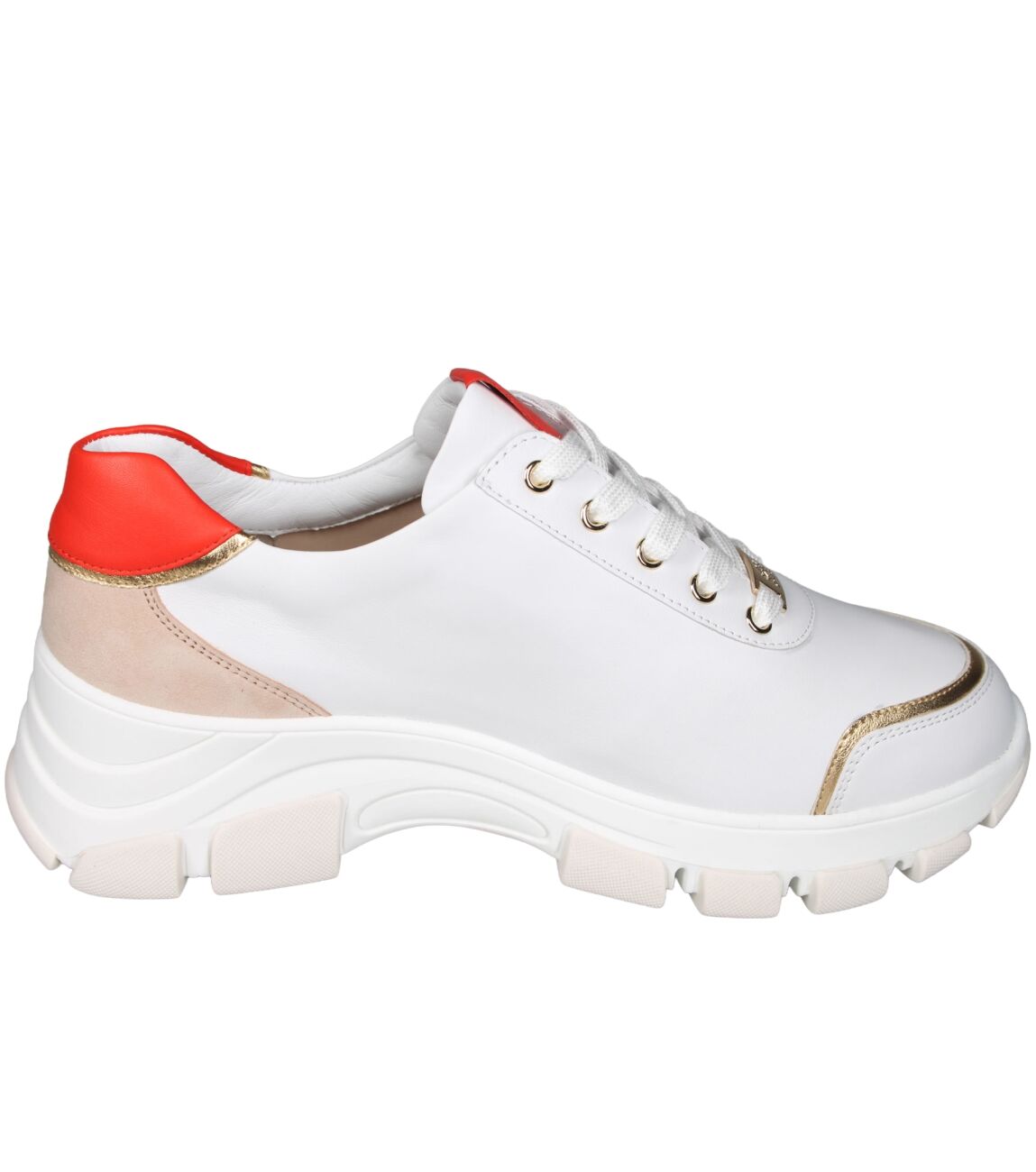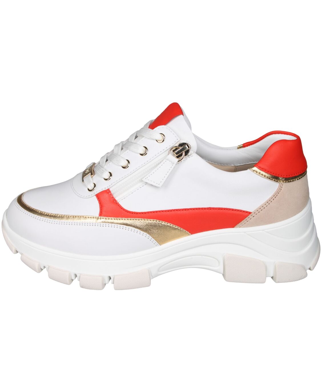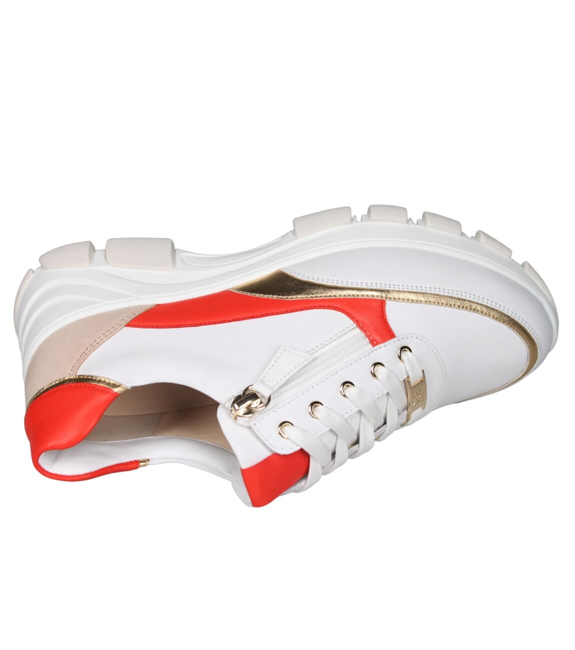 De 301450 Lissabon sneaker van Hassia in wijdte K in 0241 weiss firered is gemaakt van leer/metallic en geschikt voor extra brede voeten.