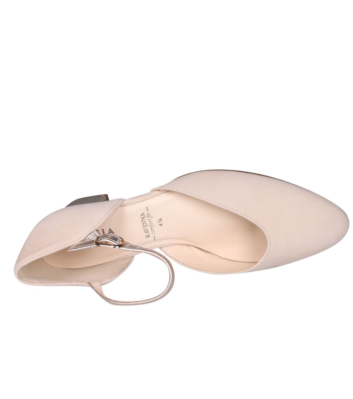 De 304093 Ravenna pump van Hassia in wijdte H in 1378 sand is gemaakt van suede/metallic en geschikt voor bredere voeten.