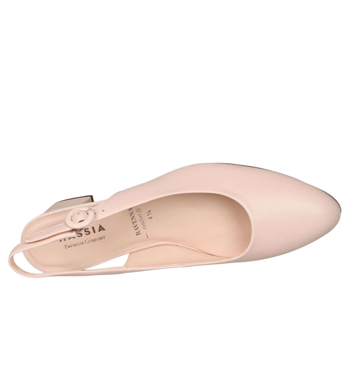 De 304700 Ravenna slingback van Hassia in wijdte H in 1300 sand is gemaakt van leer en geschikt voor bredere voeten.