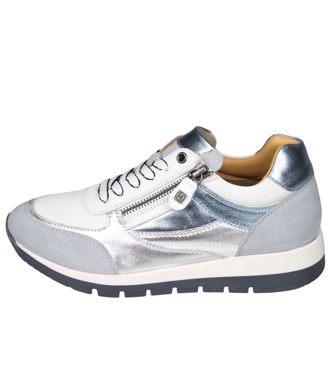 De 249.009-0349 sneaker van Helioform in wijdte K in blauw combi is gemaakt van leer/suede/metallic en geschikt voor extra brede voeten.