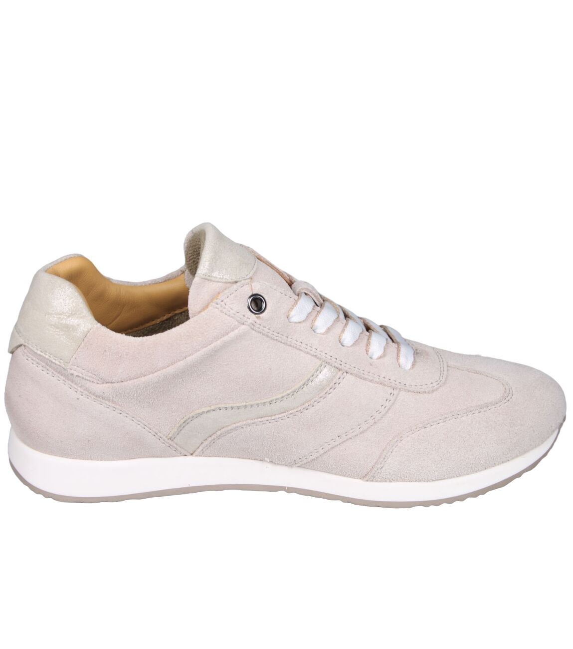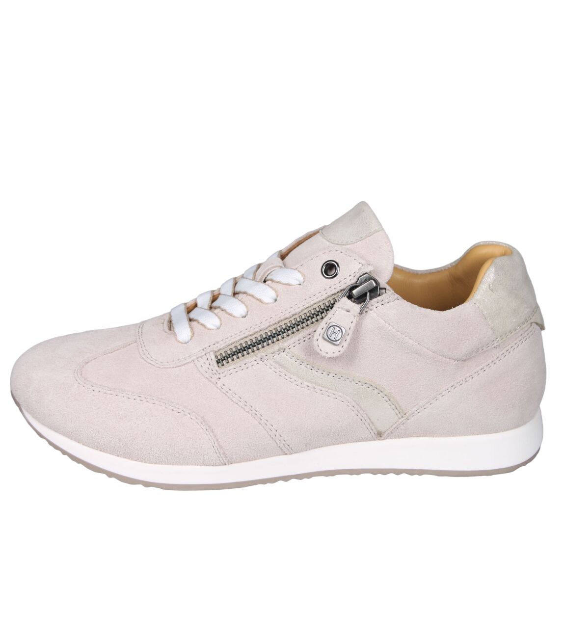 De 274.001-0130 sneaker van Helioform in wijdte H in beige is gemaakt van suede/metallic en geschikt voor bredere voeten.
