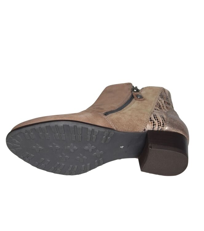 De 560.016.0352 enkellaars van Helioform in wijdte H in combi is gemaakt van suede/metallic en geschikt voor bredere voeten.
