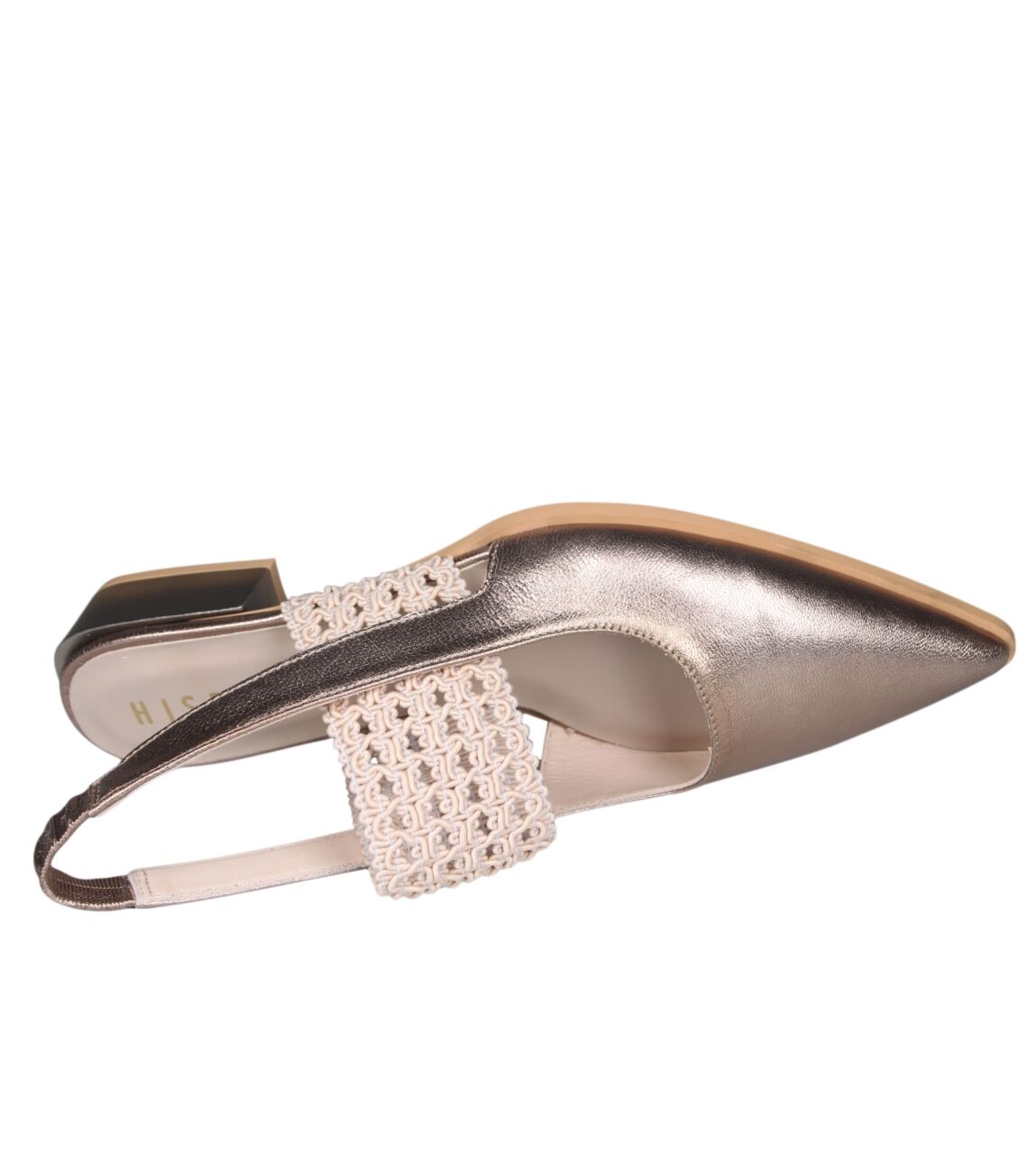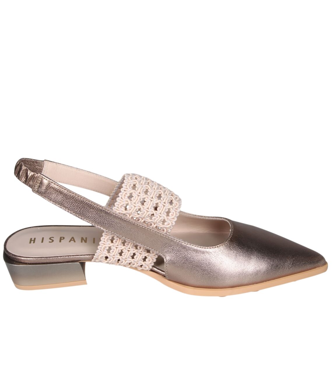 De HV264866 Turin slingback van Hispanitas in taupe is gemaakt van metallic.