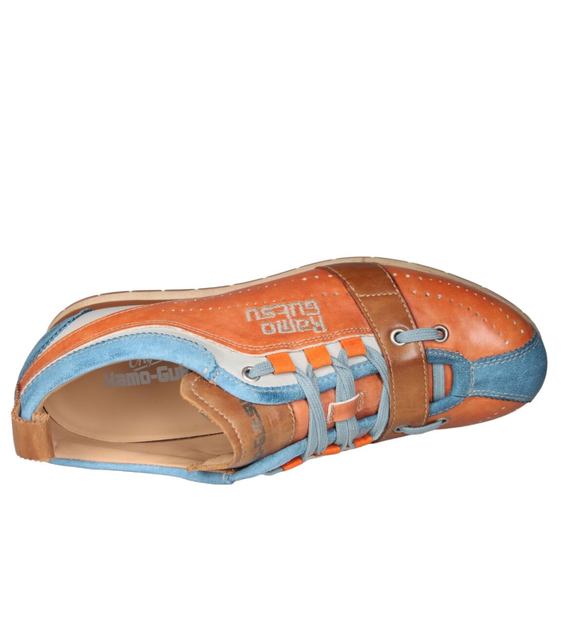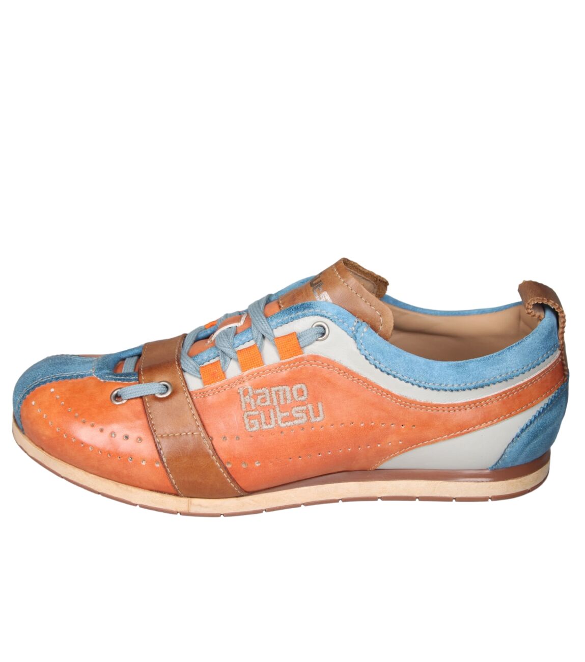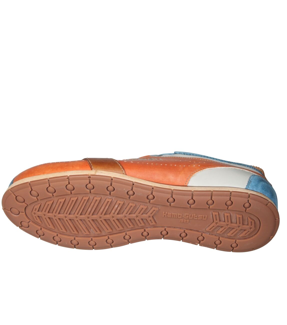 De TIFO-017 sneaker van Kamo-Gutsu in gel ice + arancio is gemaakt van leer/suede.