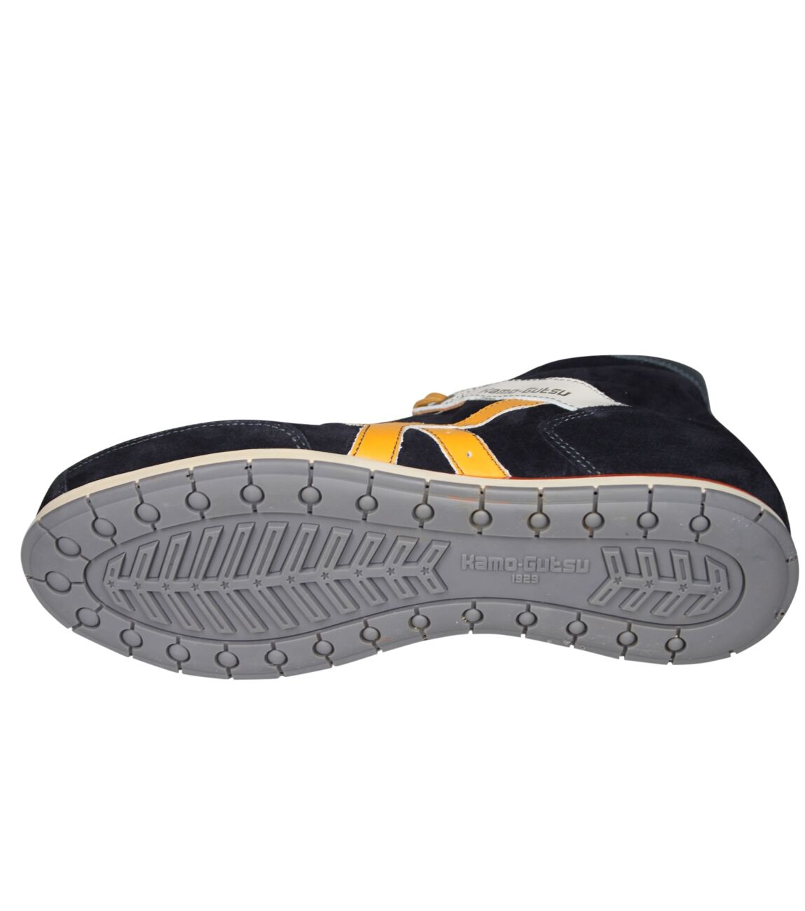 De TIFO-144 sneaker van Kamo-Gutsu in marino oil + girasole is gemaakt van suede.