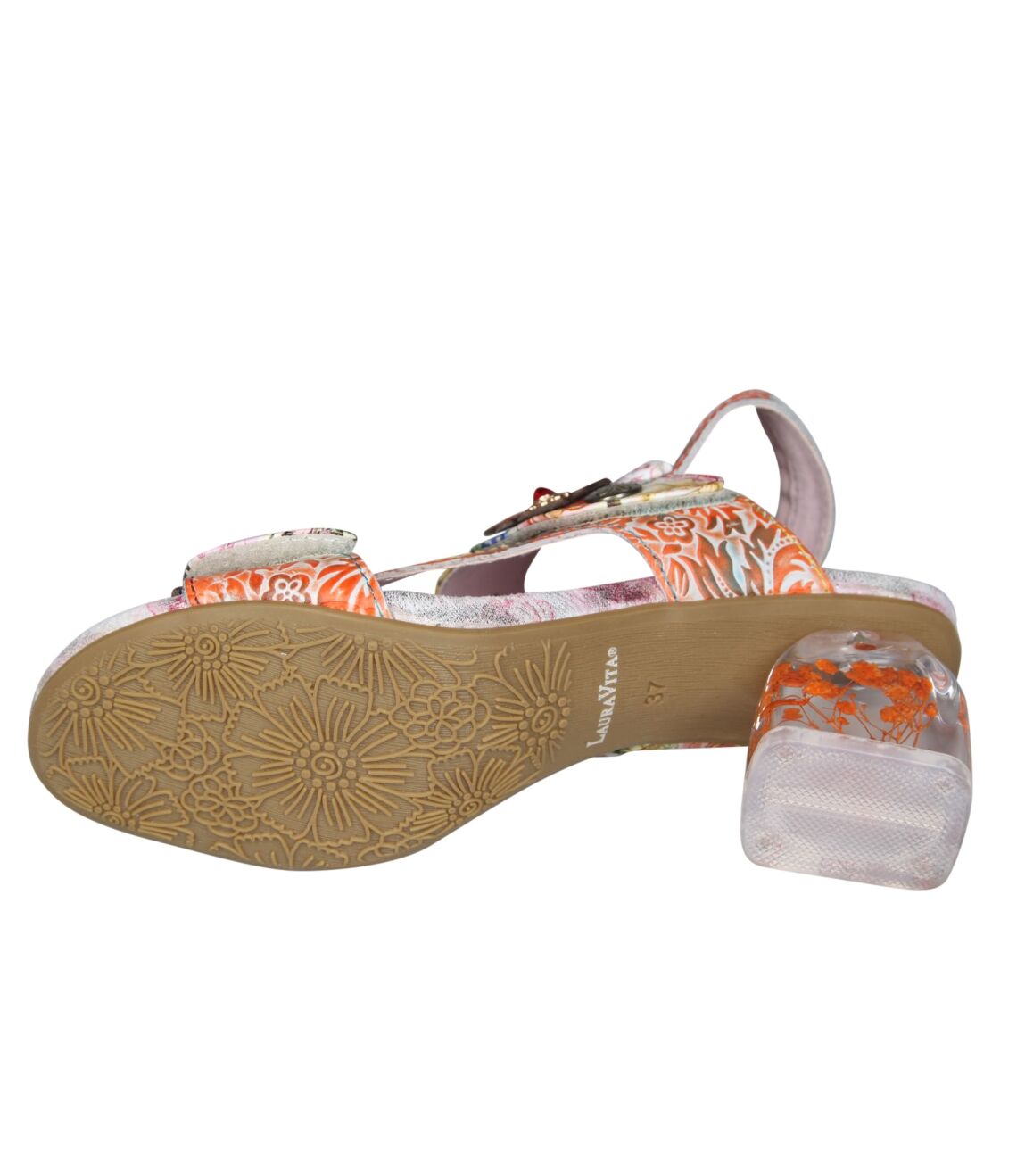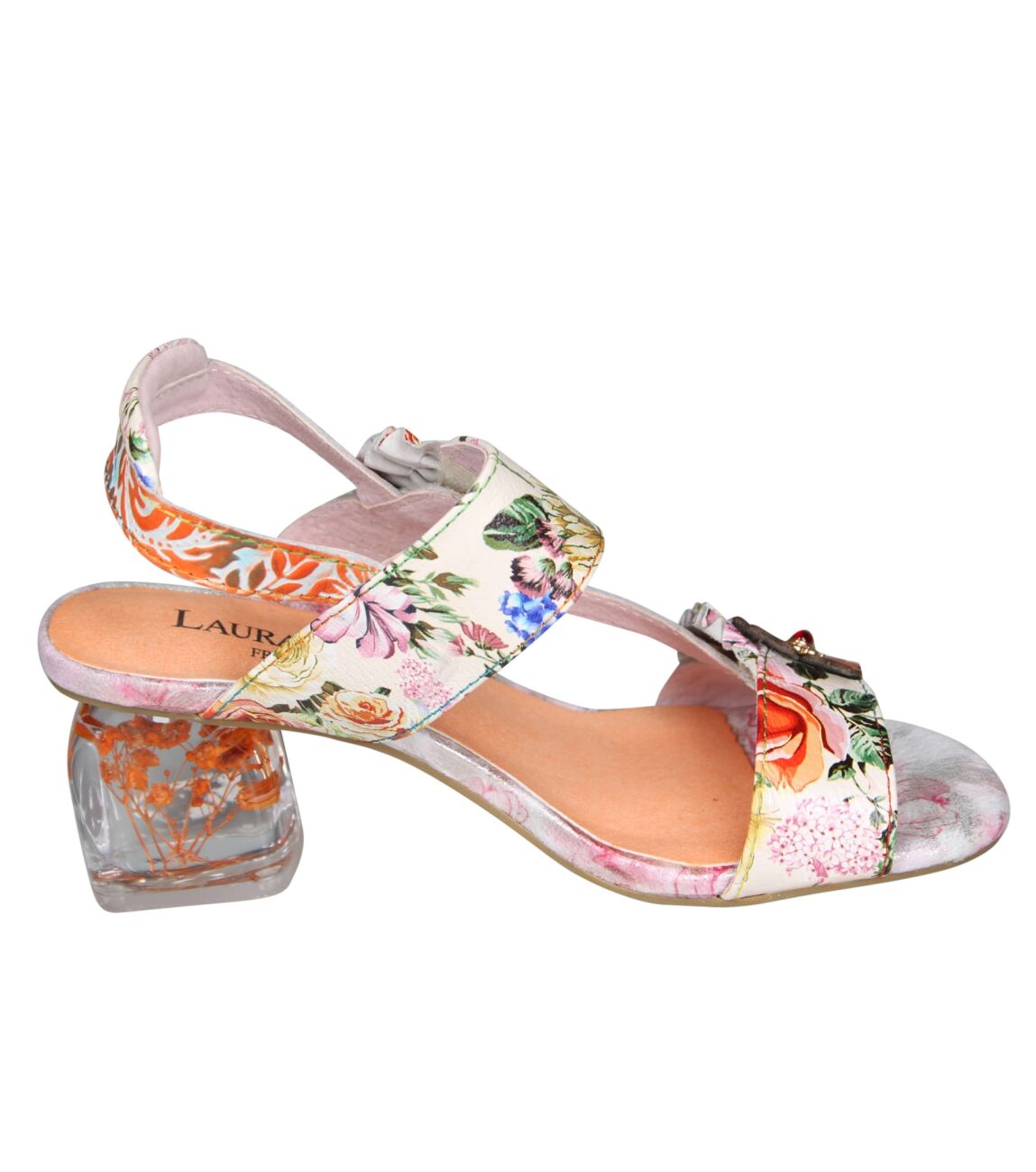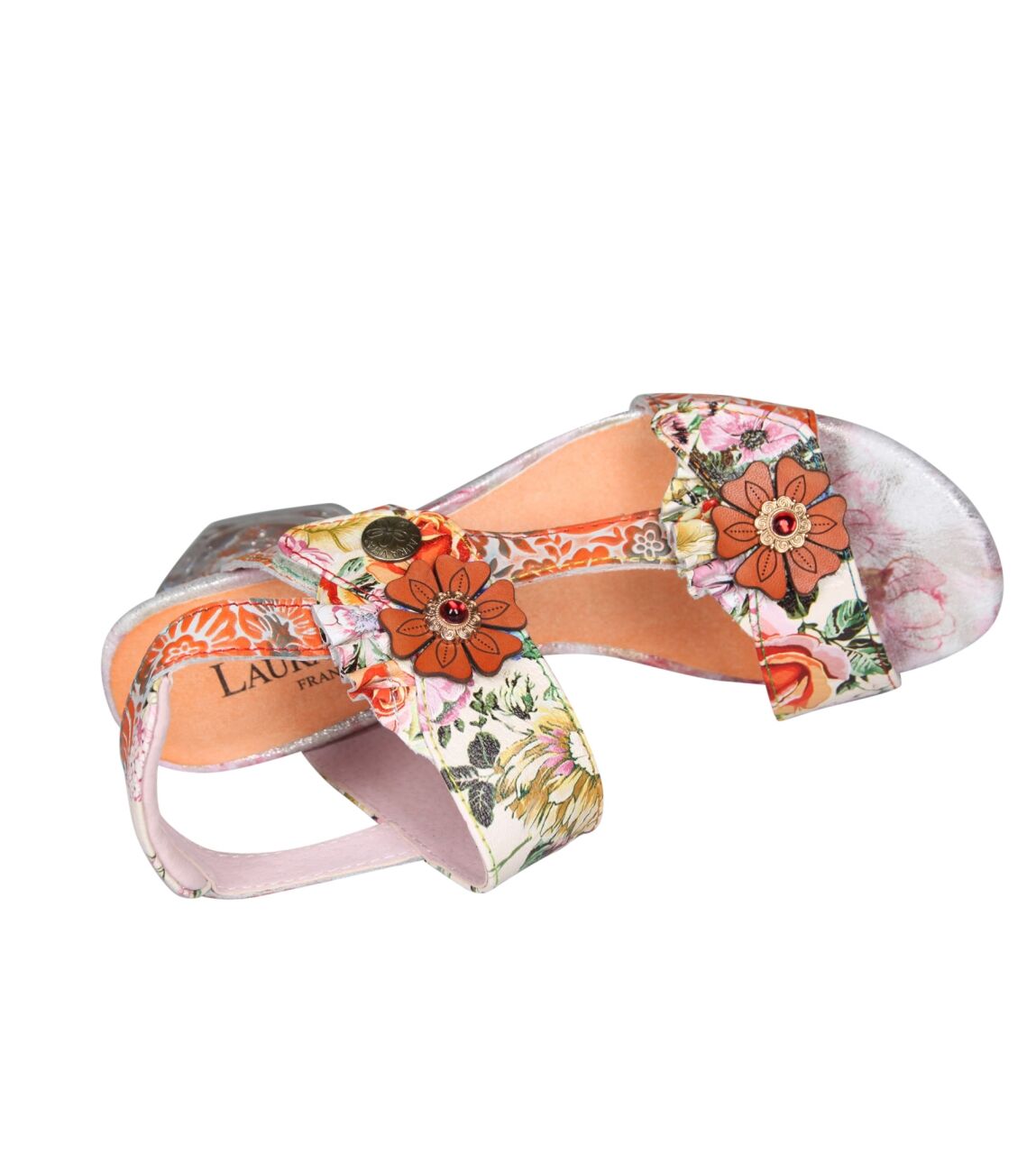 De Framboiseo 26 sandal van Laura Vita in corail is gemaakt van leer print.