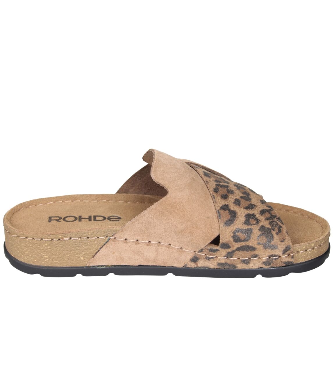 De 5410 slipper van Rohde in 75 camel is gemaakt van suede print.