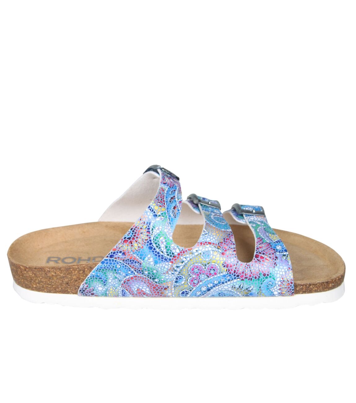 De 5626 slipper van Rohde in wijdte G in 52 baltic is gemaakt van leer print en geschikt voor gemiddelde voeten.