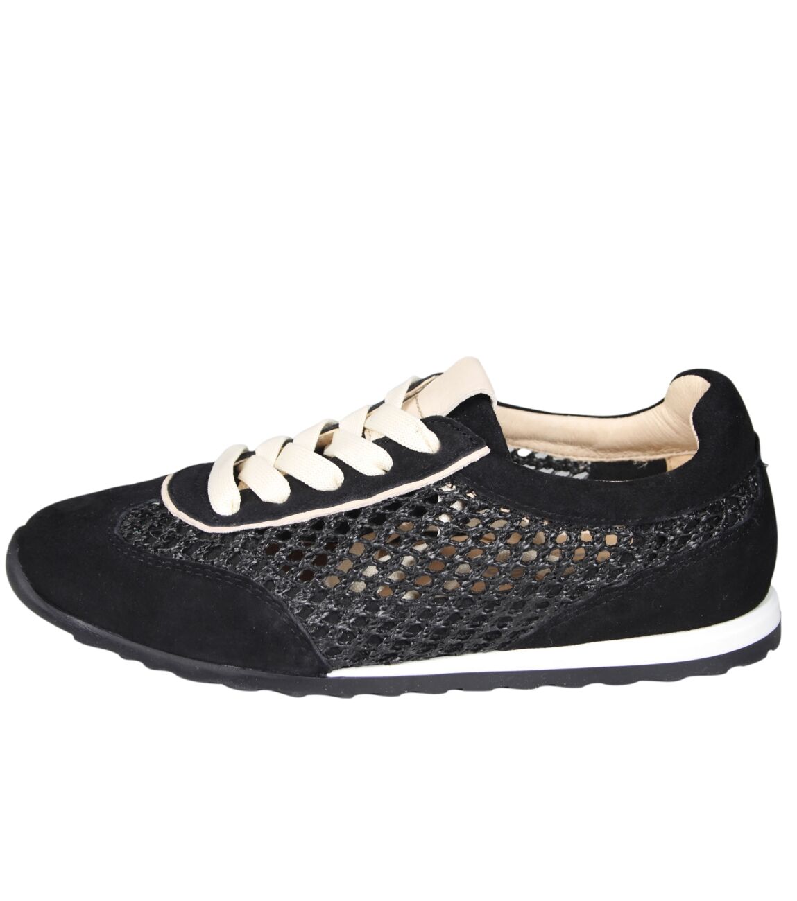 De 9.35.01 Maira sneaker van Softwaves in black/black is gemaakt van suede/raffia.