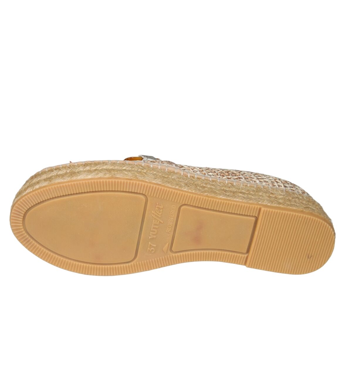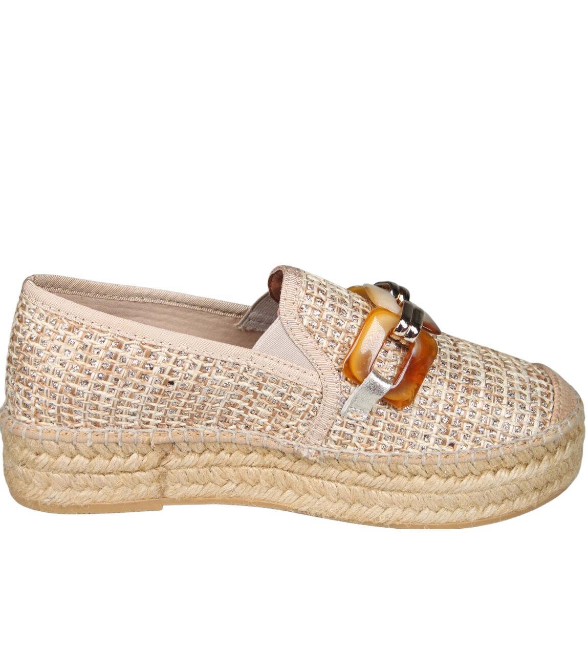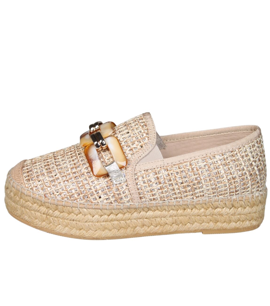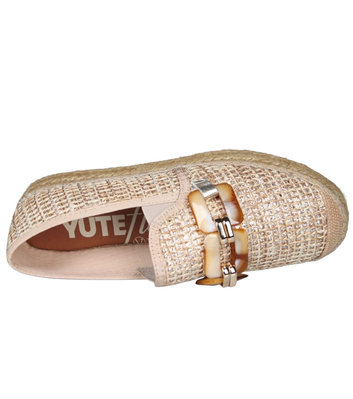 De 2310 espadrille van Viguera in leonor oro is gemaakt van metallic.