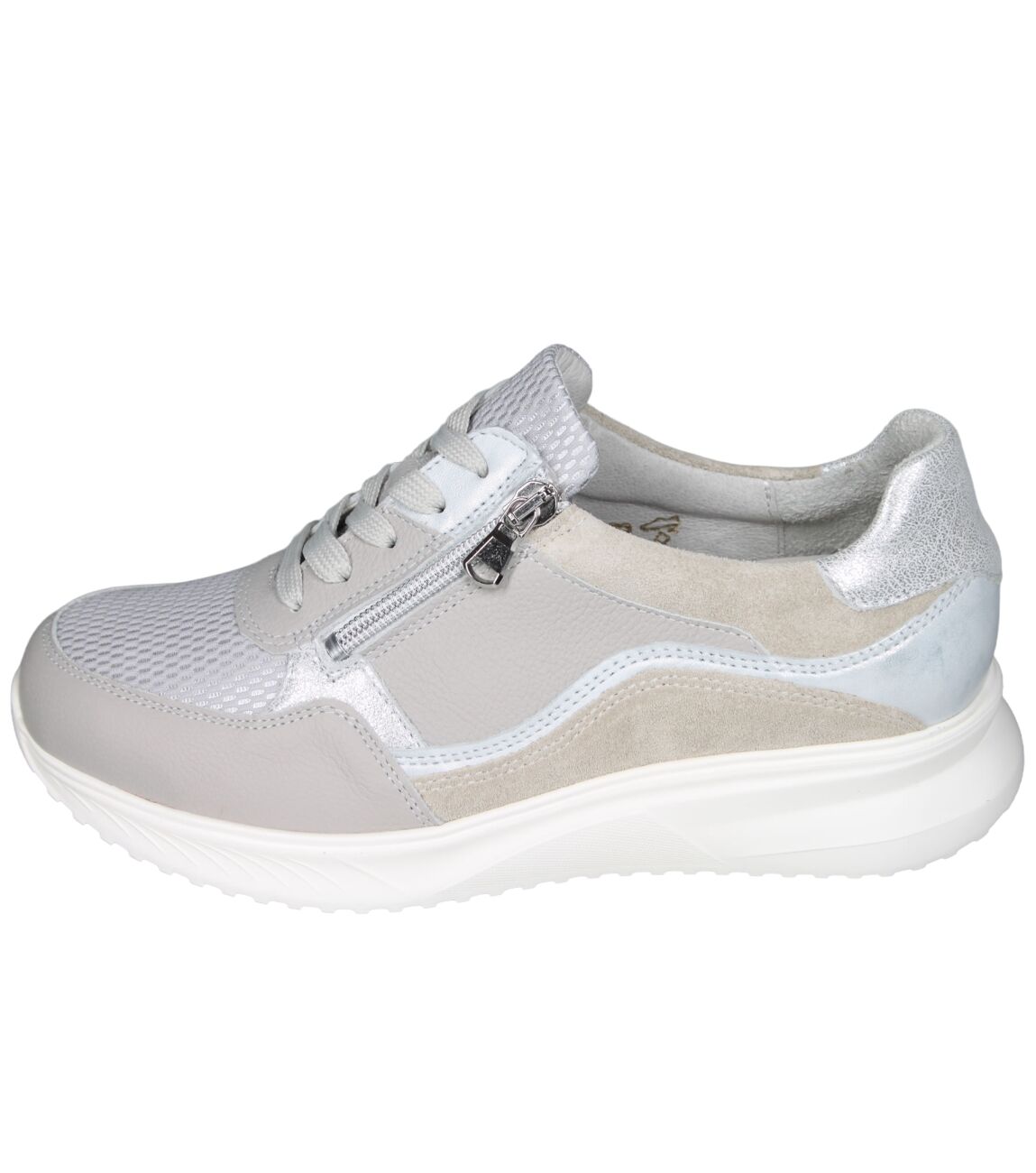 De 617003 K-Janka sneaker van Waldlaufer in wijdte K in 500 552 stein kiesel silber is gemaakt van mesh/leer en geschikt voor extra brede voeten.