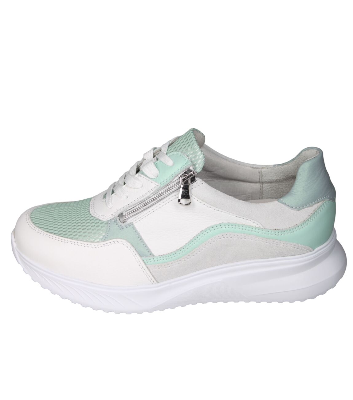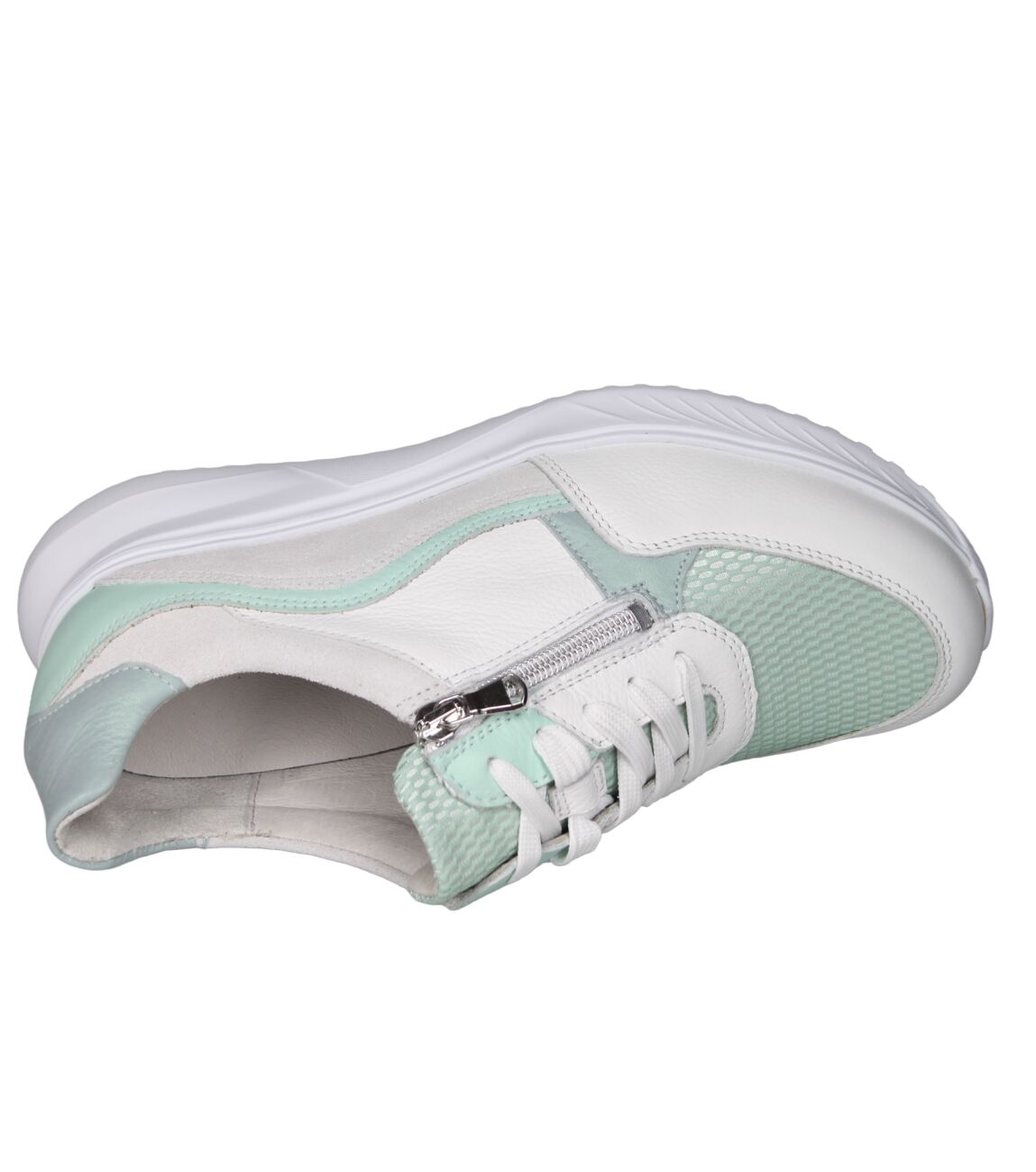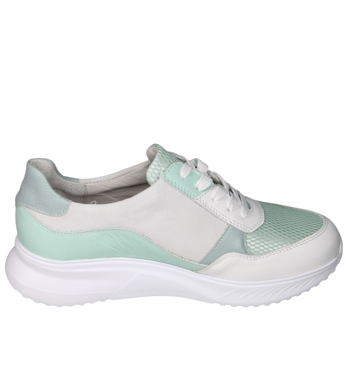 De 617003 K-Janka sneaker van Waldlaufer in wijdte K in 501 929 weiss menta cyan is gemaakt van mesh/leer en geschikt voor extra brede voeten.