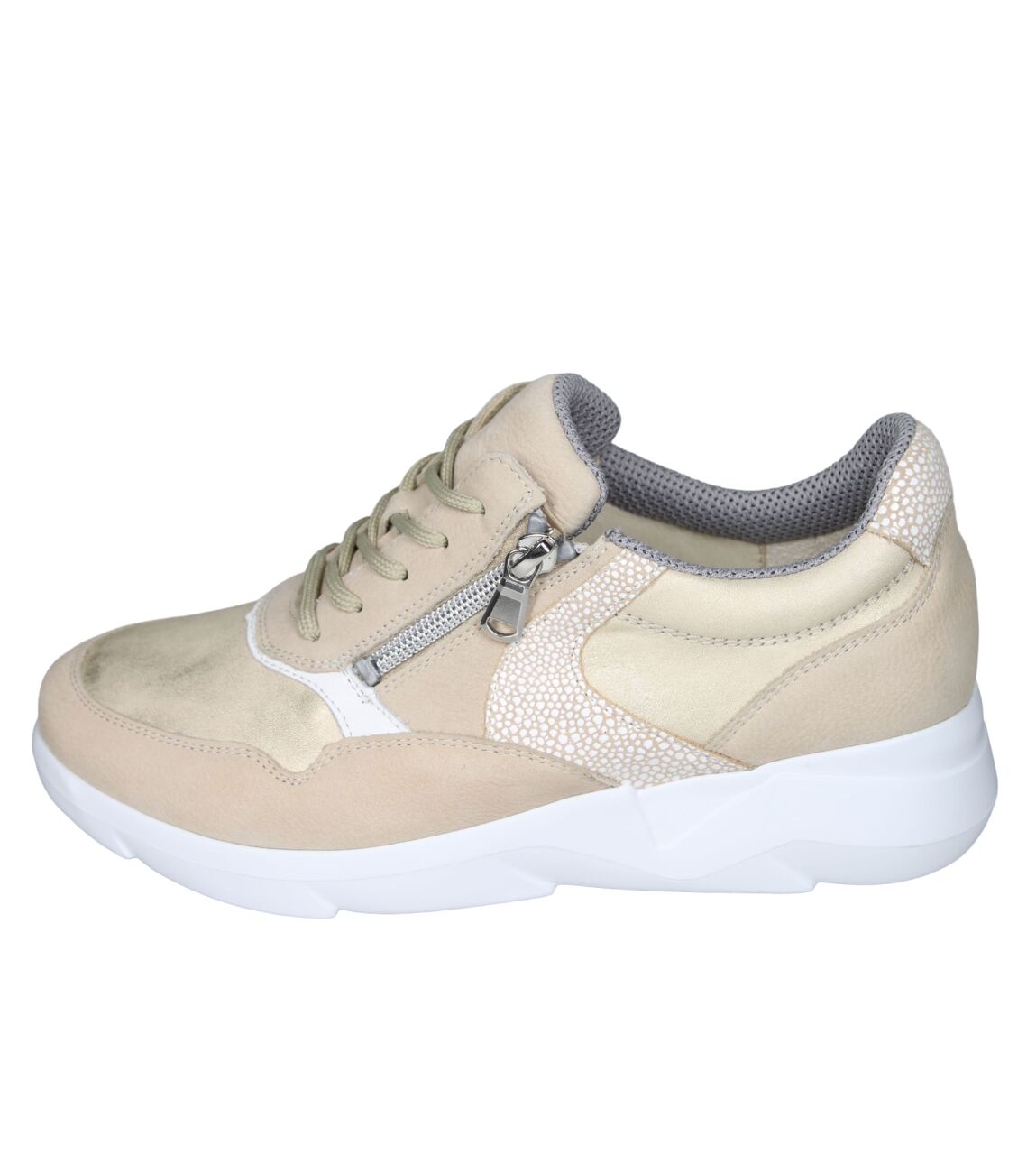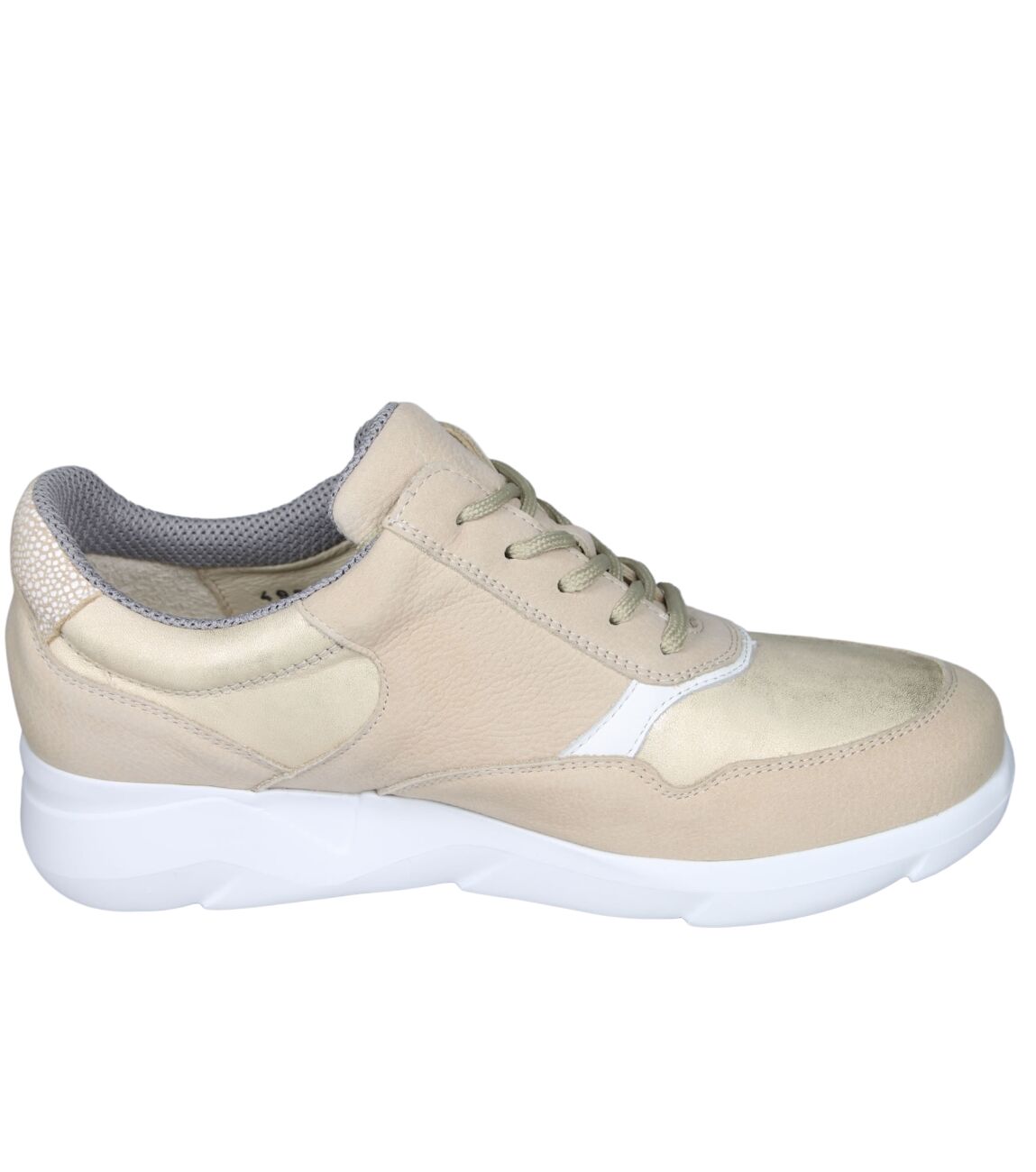 De 668001 K-Funky sneaker van Waldlaufer in wijdte K in 415 095 desert lightgold is gemaakt van nubuck/metallic en geschikt voor extra brede voeten.