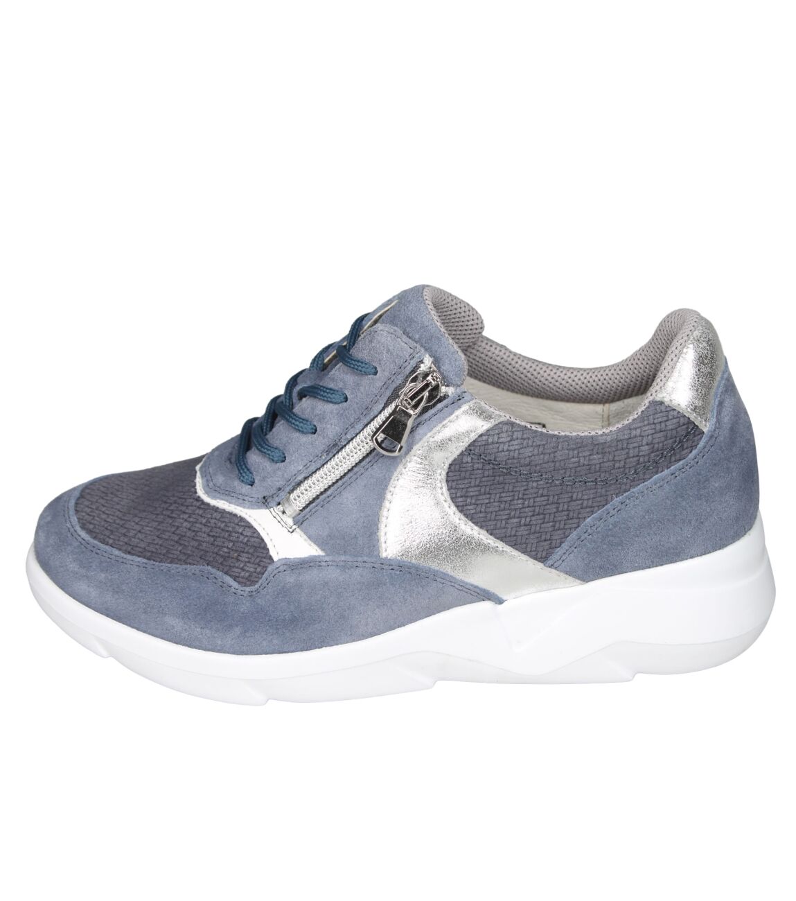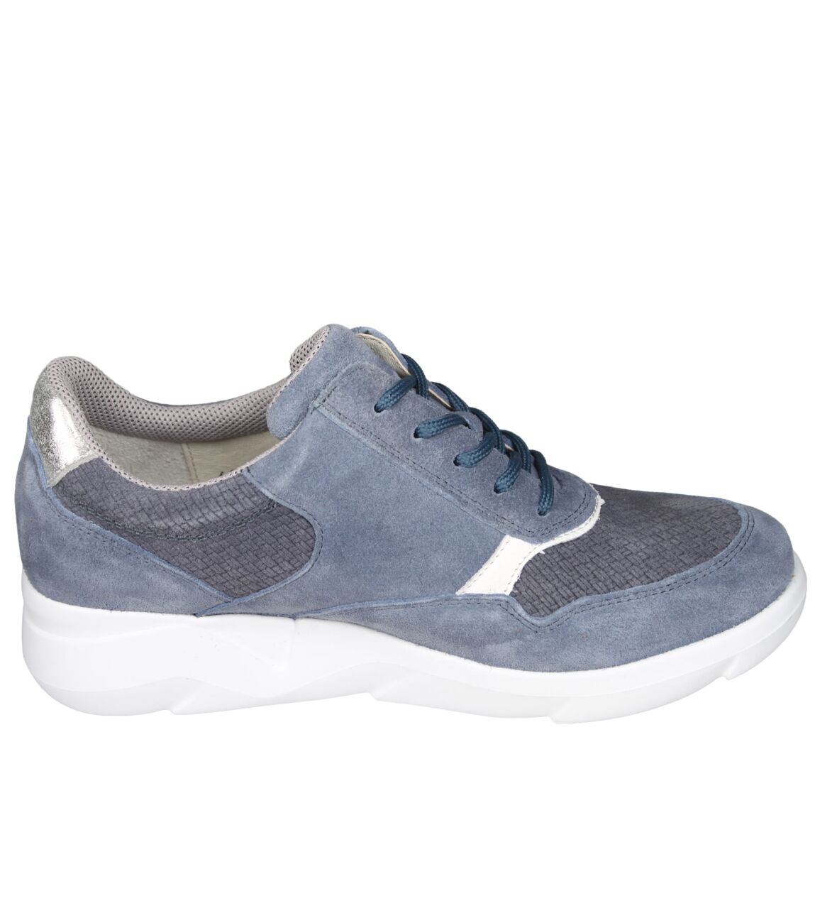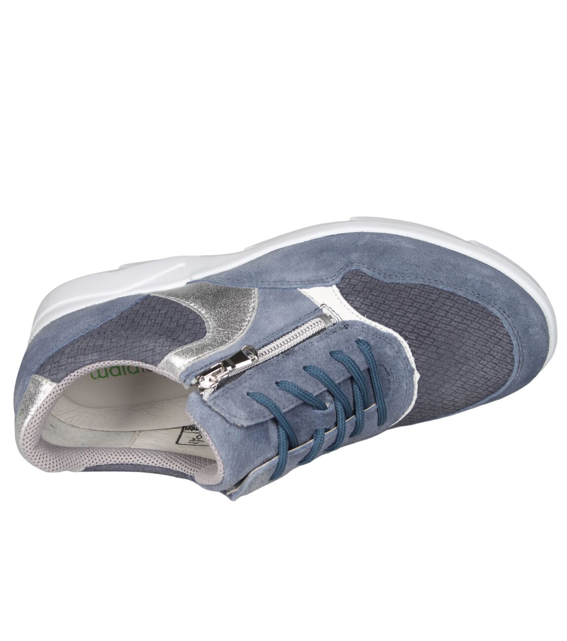 De 668001 K-Funky sneaker van Waldlaufer in wijdte K in 413 855 jeans weiss argento is gemaakt van suede/metallic en geschikt voor extra brede voeten.